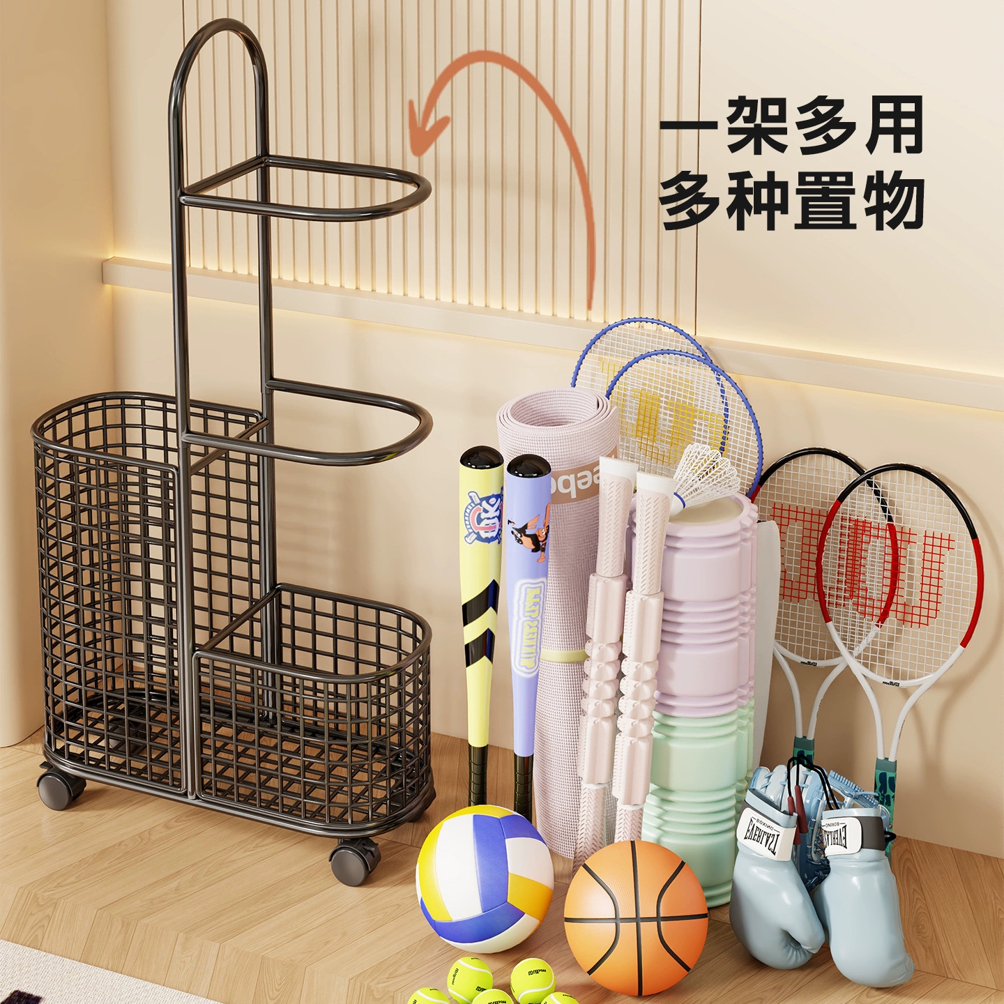 多功能运动器材收纳架篮球收纳架家用瑜伽垫大容量可移动收纳筐