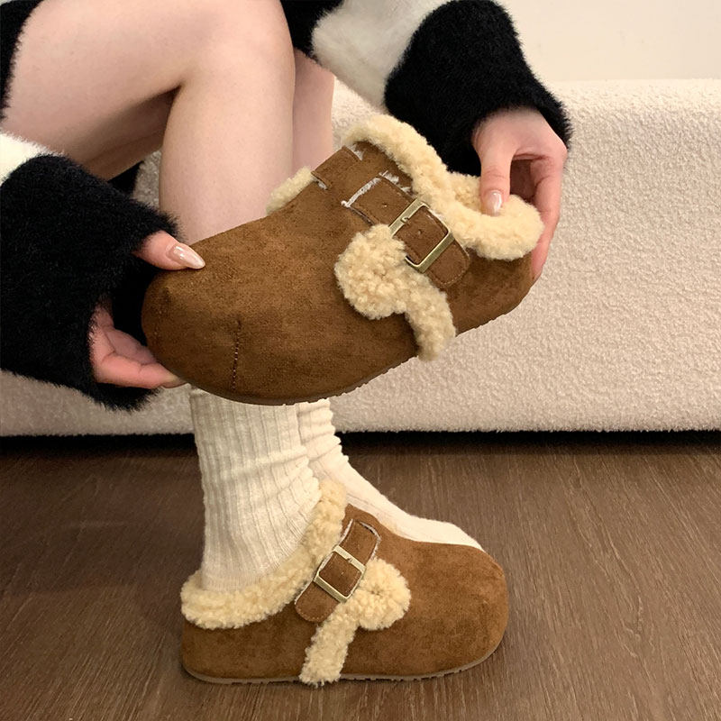 低帮厚底雪地靴女2025新款冬季懒人一脚蹬毛毛棉鞋加绒加厚女鞋子