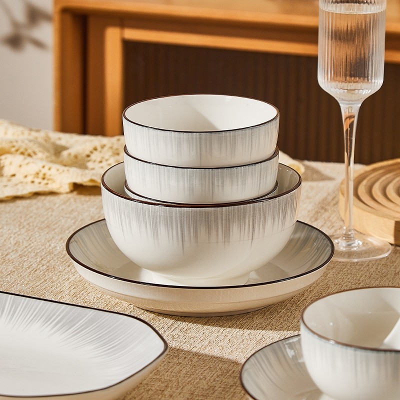 日式釉下彩盘子陶瓷家用2025新款高颜值餐具碗盘碗碟组合微波炉