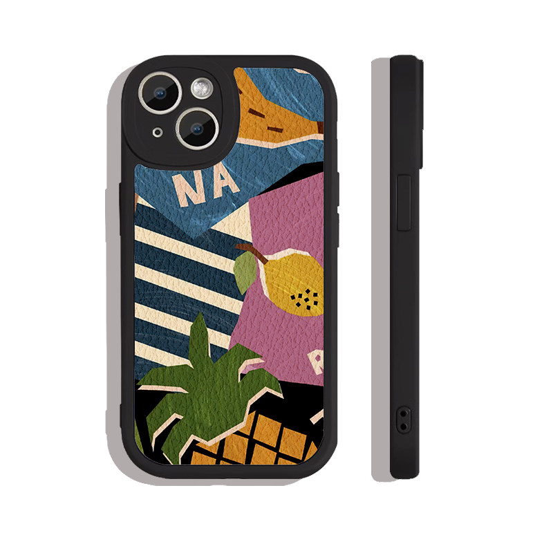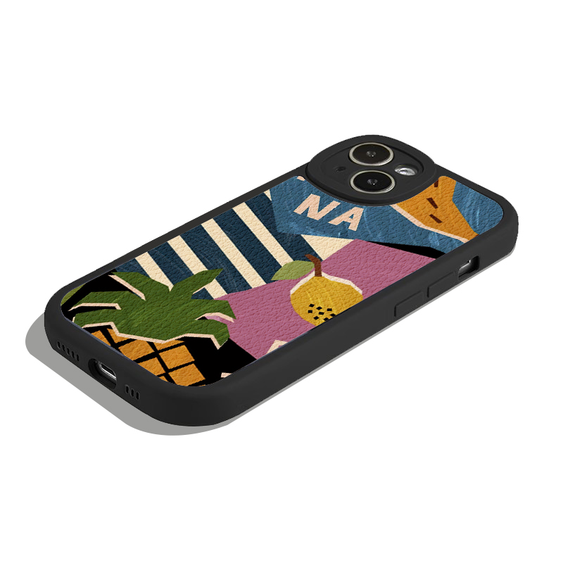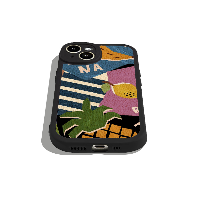 黑色小羊皮高级拼接版画插画全包手机壳适用苹果17nova14华为p70/mate70小米15reno14vivo30荣耀300iPhone15