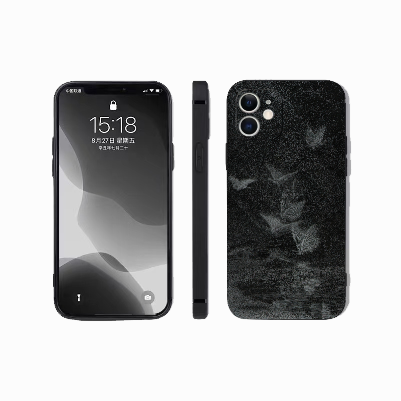 复古意象画化蝶飞舞黑色液态硅胶软壳适用苹果17nova14华为p70mate70小米15opporeno14vivo30荣耀300iPhone15