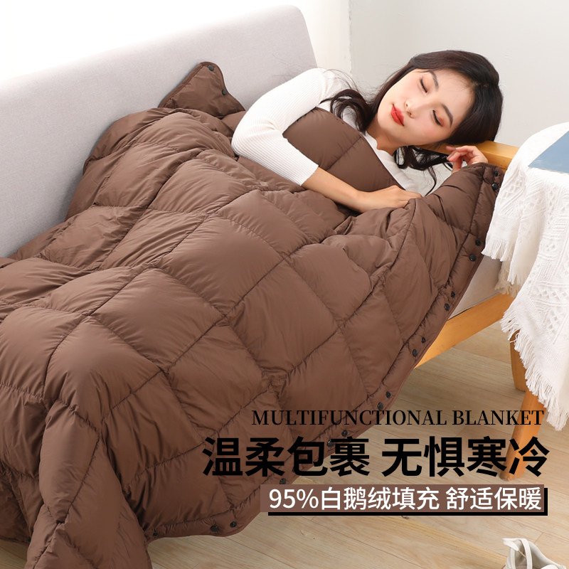 如奕头等舱航空毯95白鹅绒羽绒毯子多功能便携午睡毯斗篷披肩盖毯