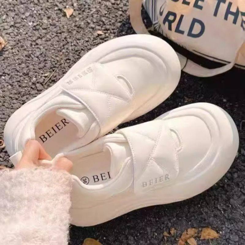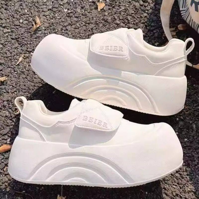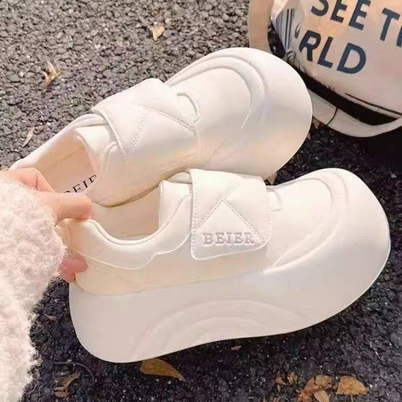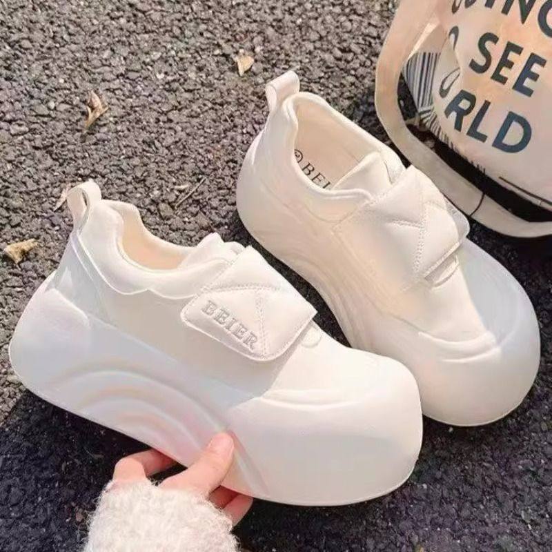 QVAJ丑萌大头小白鞋女软皮厚底增高2025新款百搭魔术贴运动休闲鞋