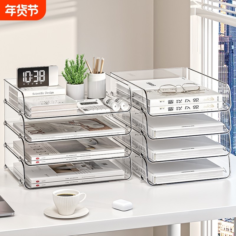 桌面书本收纳架书桌置物架文件多层亚克力空间利用神器整理师推荐