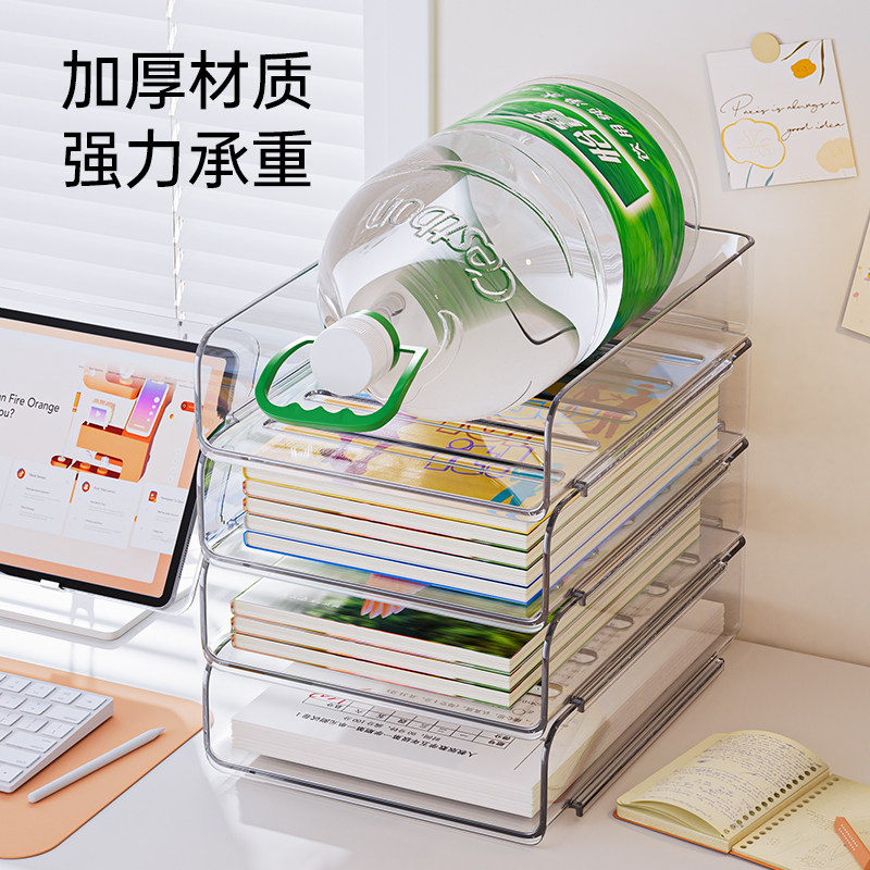 整理师推荐书桌置物架多层透明桌上书本收纳架办公桌文件具收纳盒