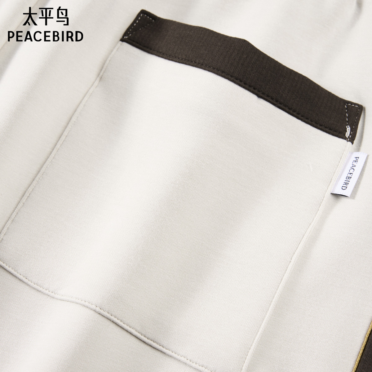 太平鸟男装舒适休闲裤撞色刺绣直筒中短裤男士夏季潮流五分裤