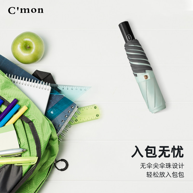 Cmon自动雨伞安全圆角折叠晴雨两用黑胶防晒紫外线遮阳太阳伞学生