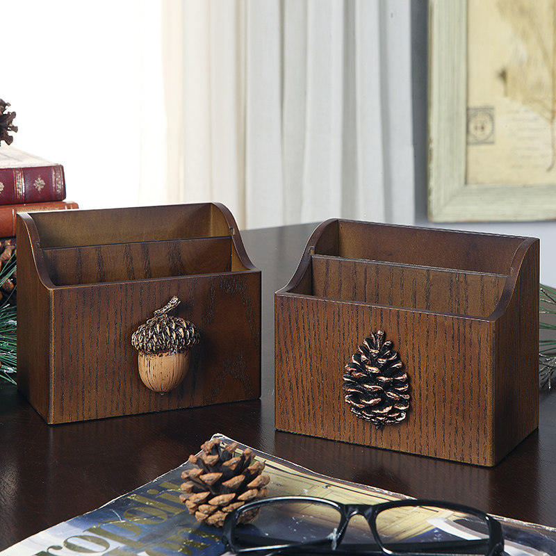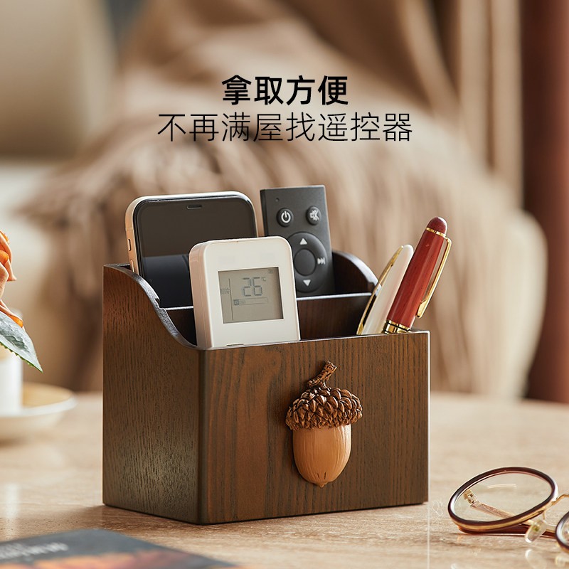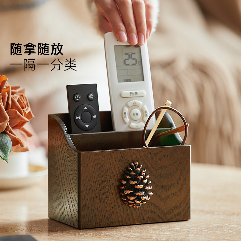 遥控器收纳盒美式客厅木质茶几小木盒办公室桌面笔筒遥控板整理盒