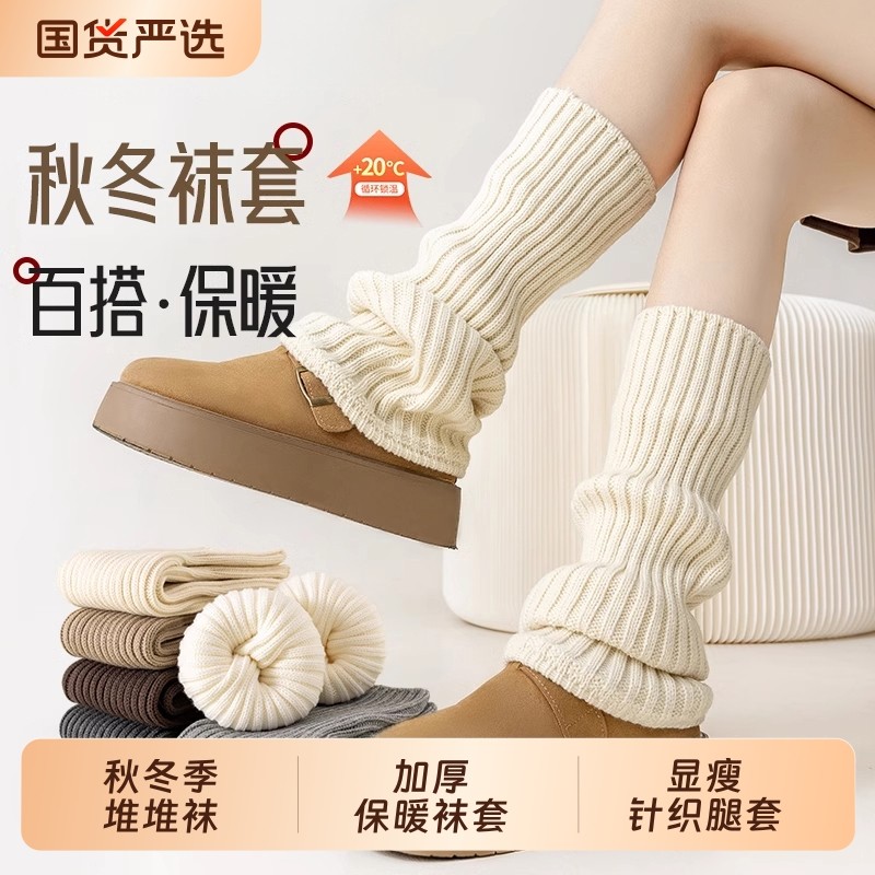 白色堆堆袜子女秋冬季袜套加厚保暖中筒袜针织小腿套配雪地靴长袜