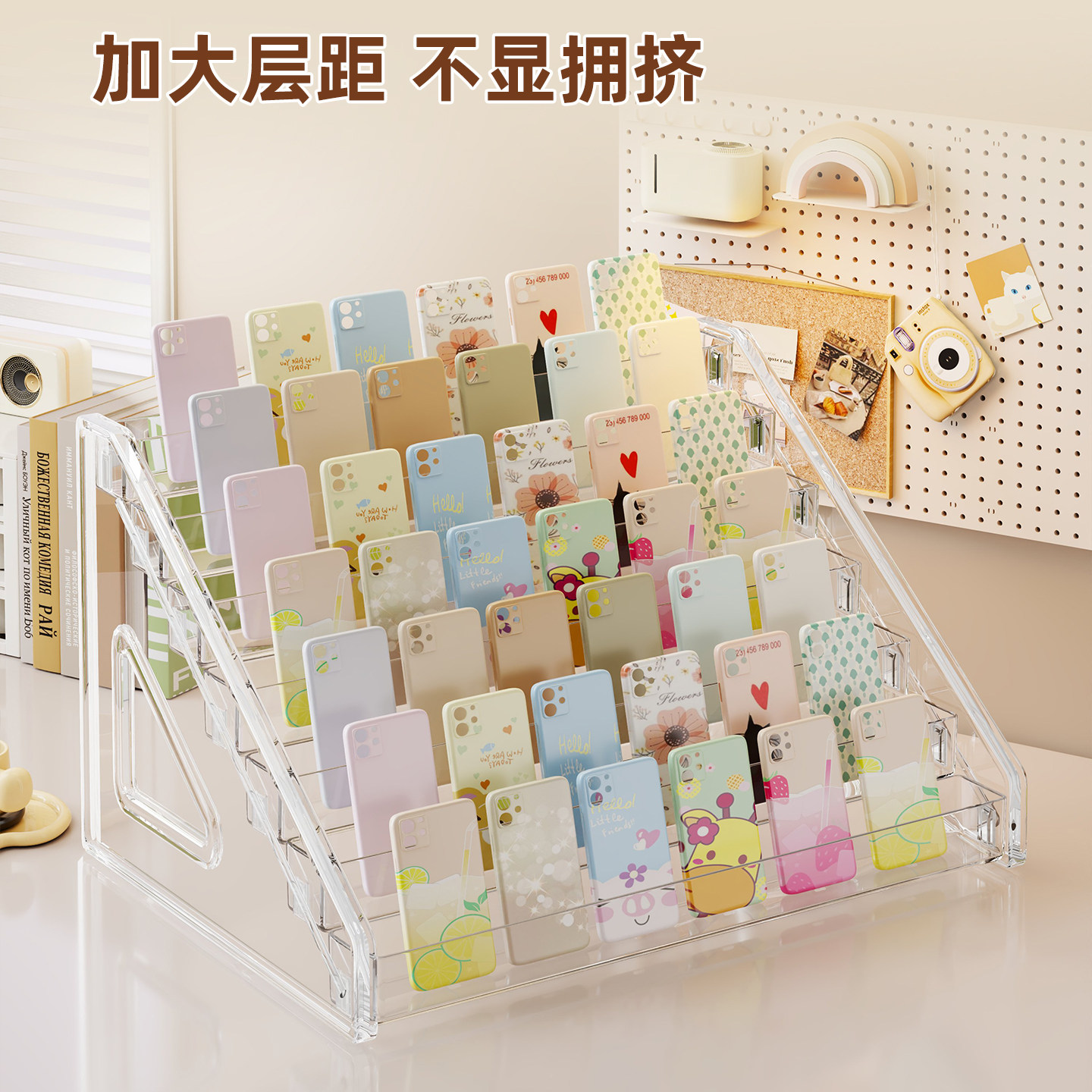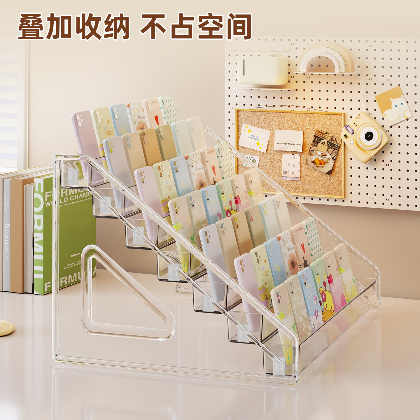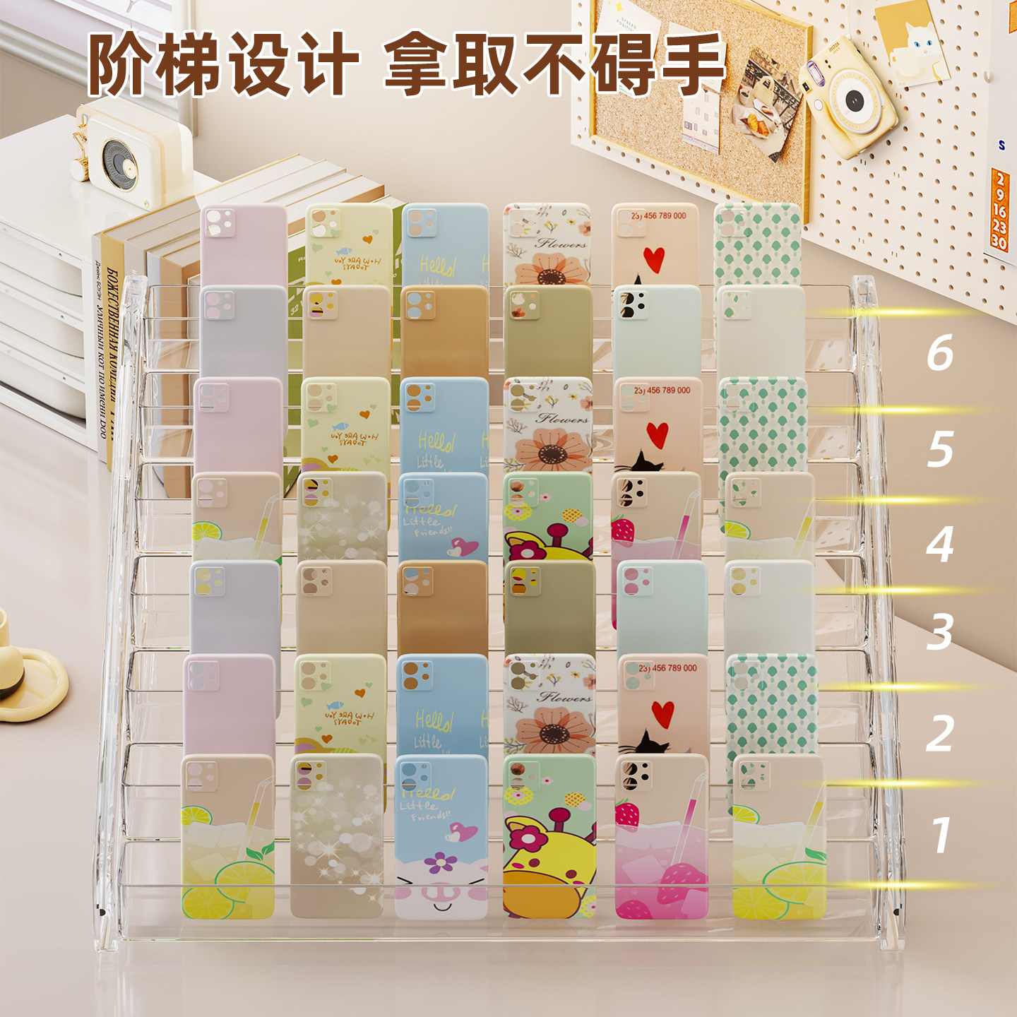 亚克力手机壳收纳架阶梯陈列架展示架贺卡卡片货架多格手机盒桌面