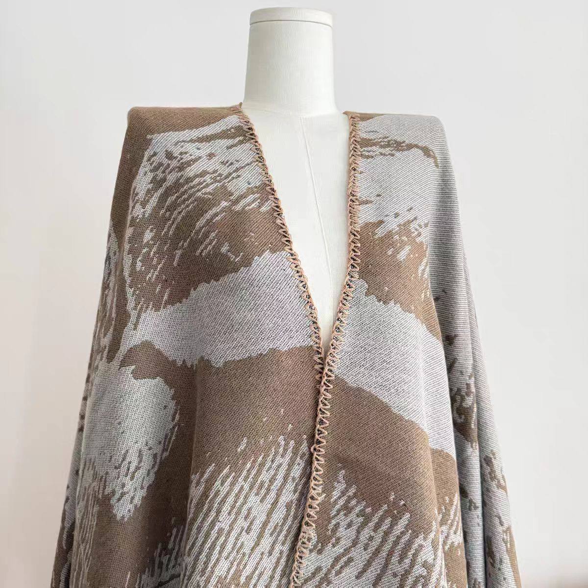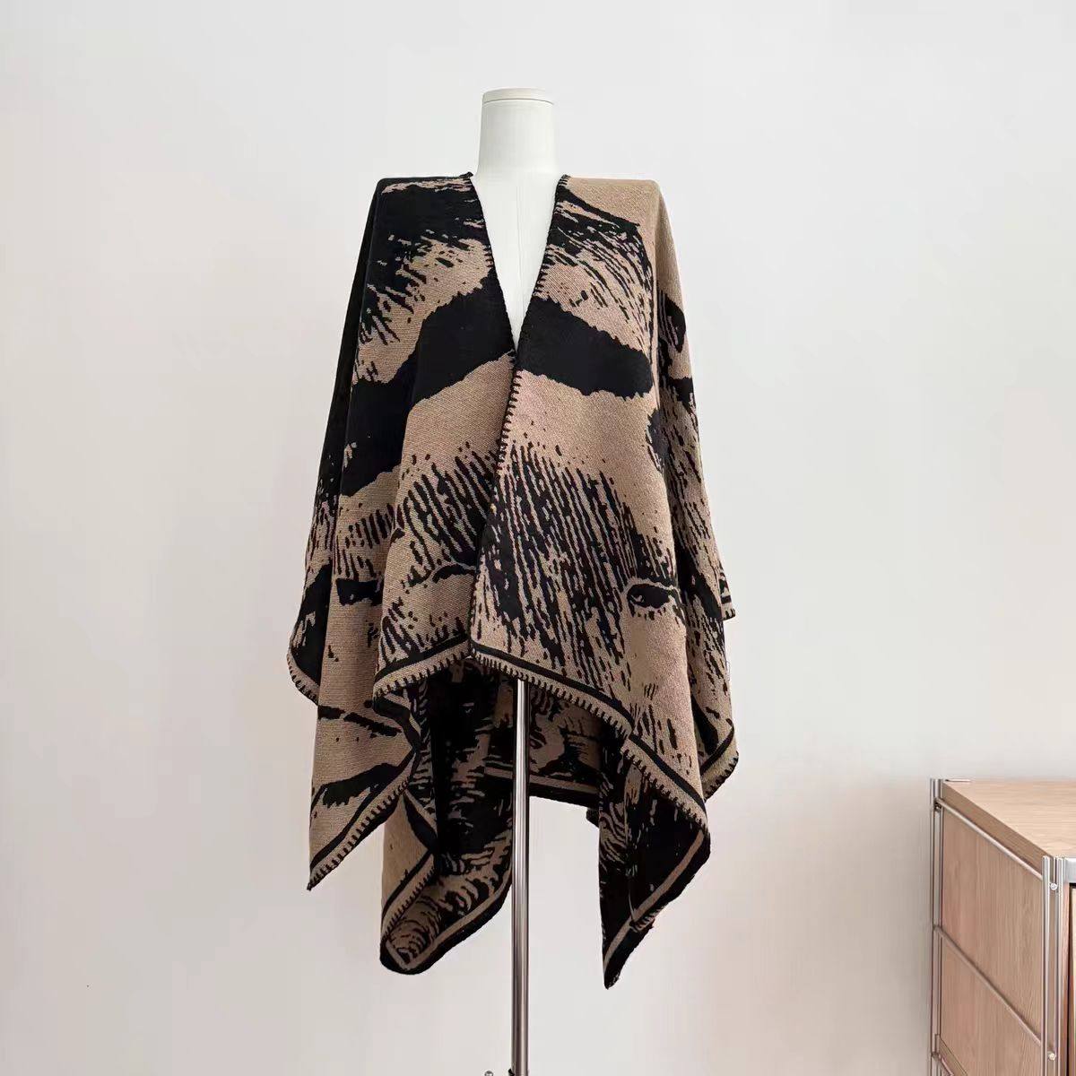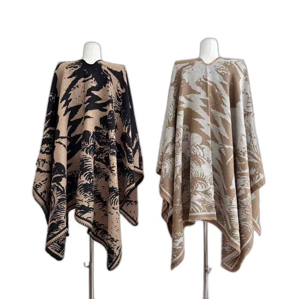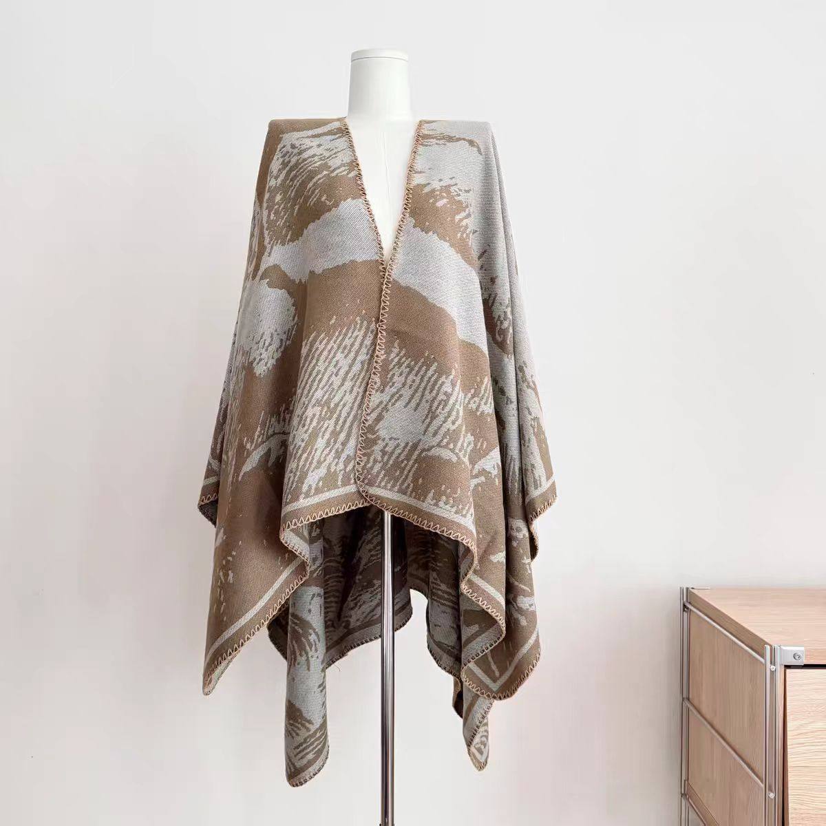 2025新款百搭单品!新中式提花斗篷披肩女秋季民族风垂感上衣外套