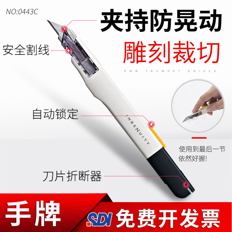 台湾SDI手牌9mm美工刀轻便携随身拆贴膜刀小号壁纸裁纸墙纸墙布刀汽车贴膜雕刻刀架尖角雕刻刀工艺刀免费开票