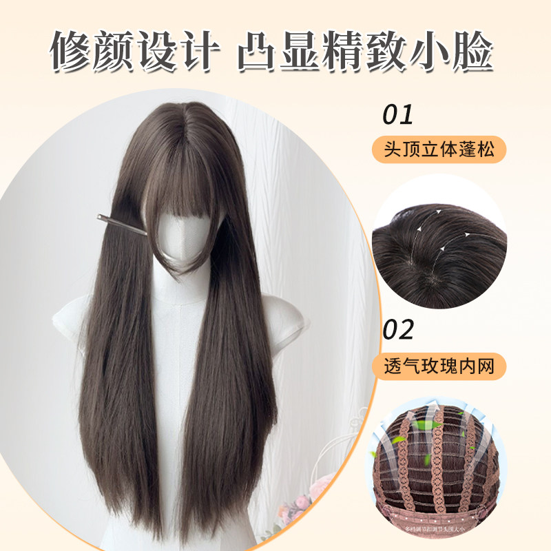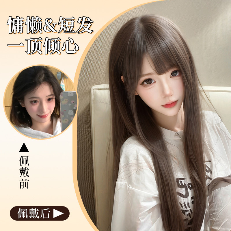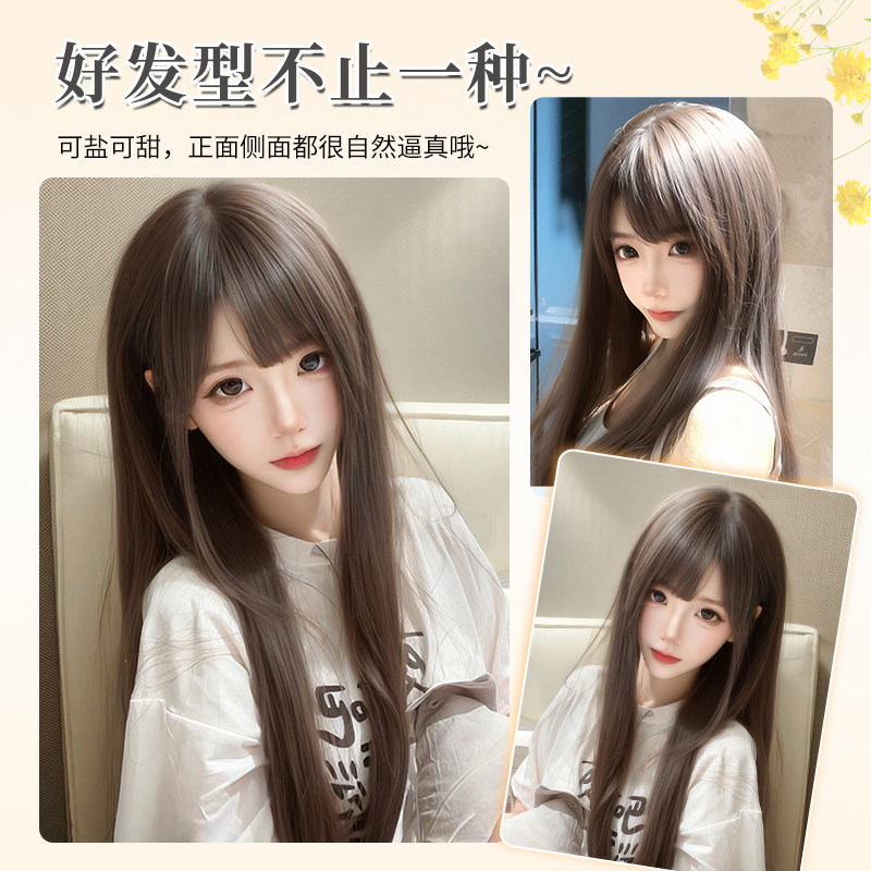 假发女齐刘海长直发jk少萝奶茶色整顶日常自然假发女全头套