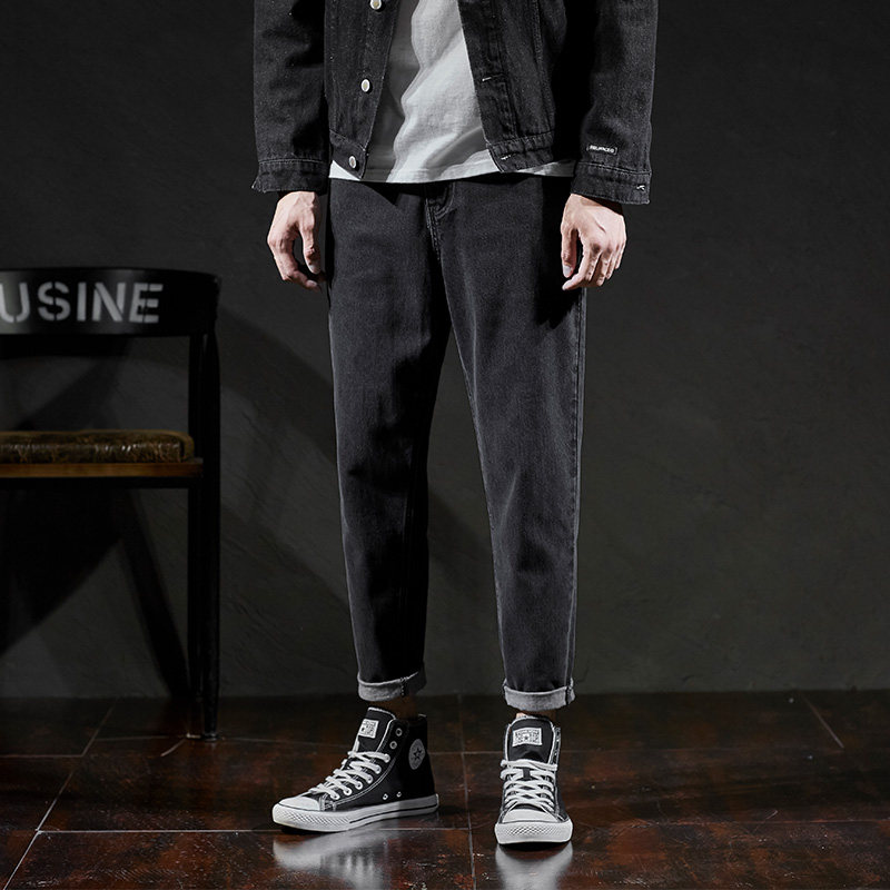 唐狮秋冬季新款黑色牛仔裤男潮牌宽松直筒裤子男春韩版潮流