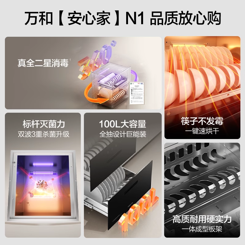 [政府补贴]万和N1消毒碗柜嵌入式厨房小型消毒柜烘干一体大容量