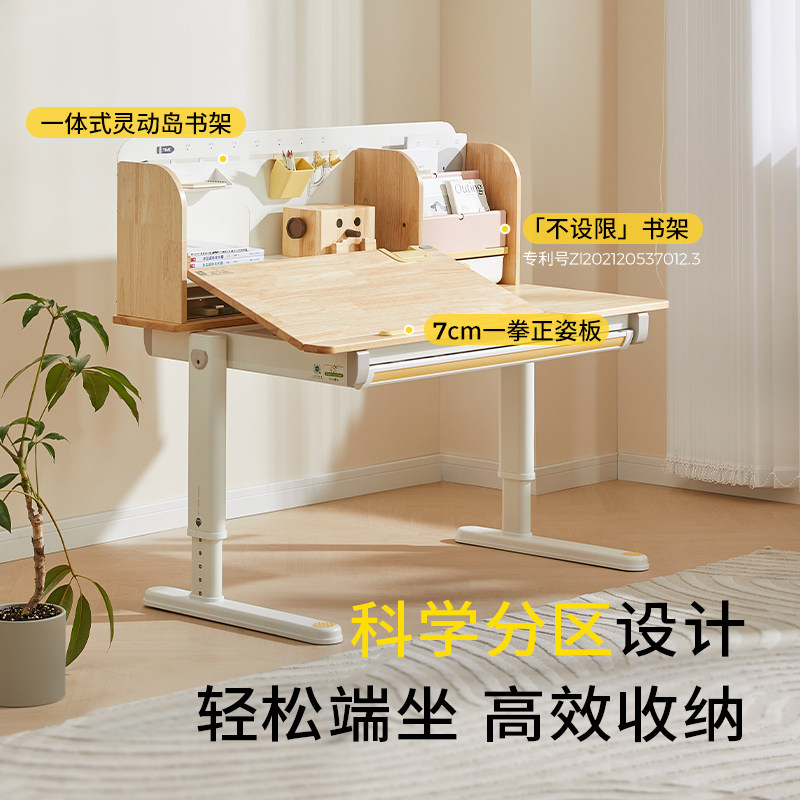 2平米学习桌实木儿童书桌写字桌椅套装小学生家用进取Pro单桌