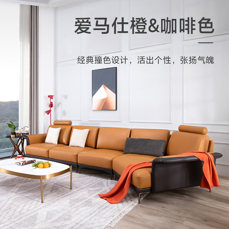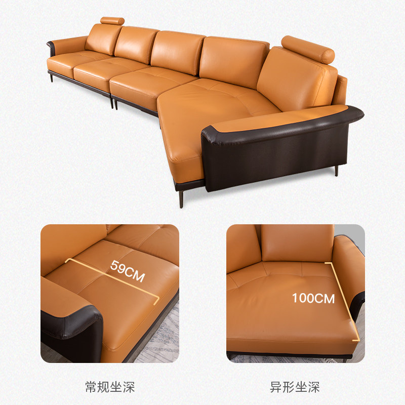 左右沙发可调节移动靠背大帆船沙发超宽坐深真皮白色沙发客厅6068