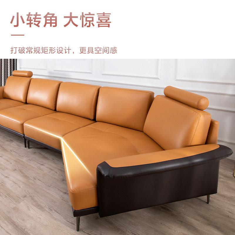 现代简约奶油风复古民宿直排弧形客厅乳胶硅胶皮真皮沙发酒店大堂