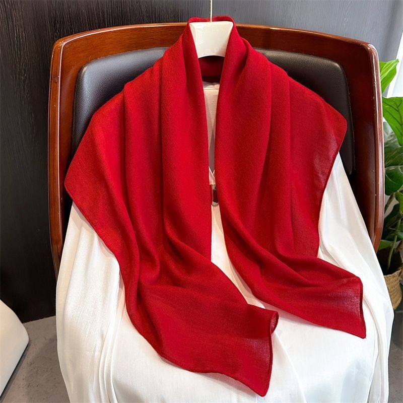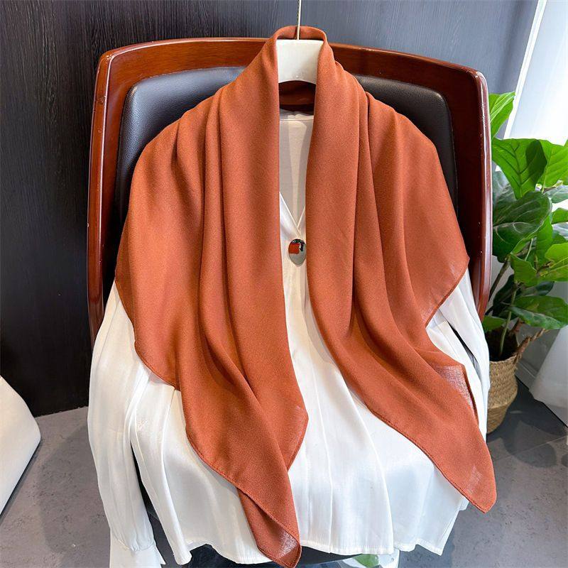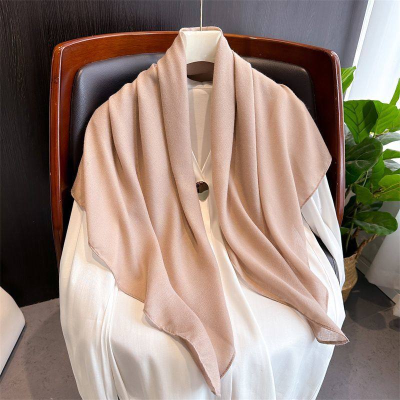 2025秋季围巾女棉麻纯色亚麻90*90小方巾三角巾装饰披肩红色绿色