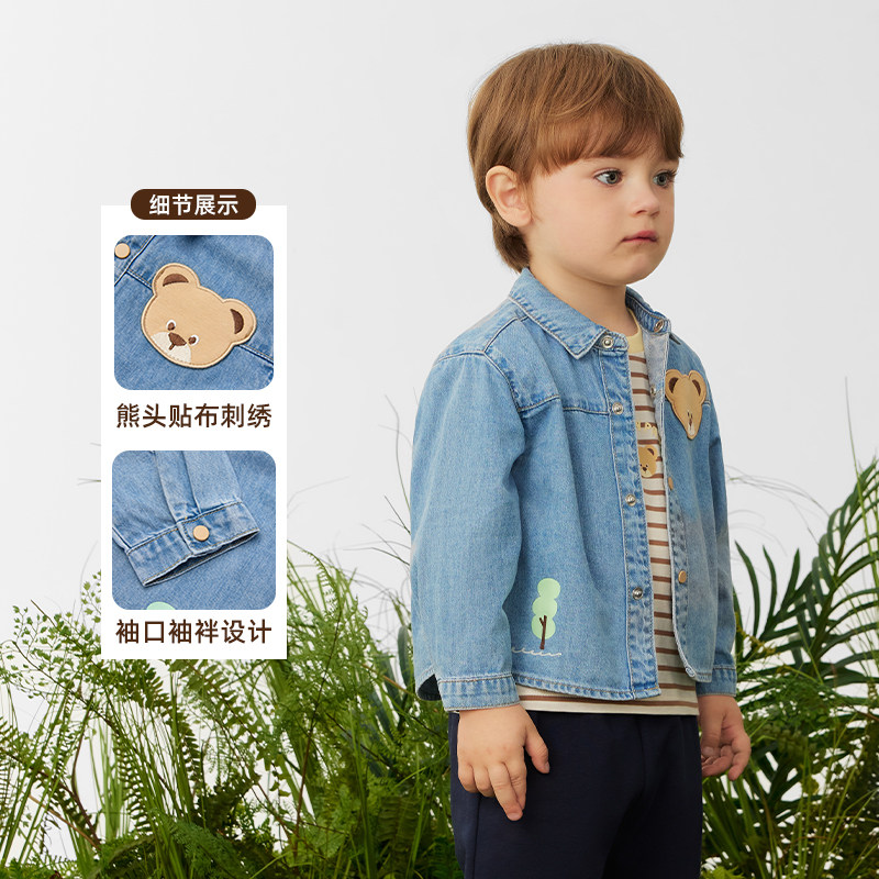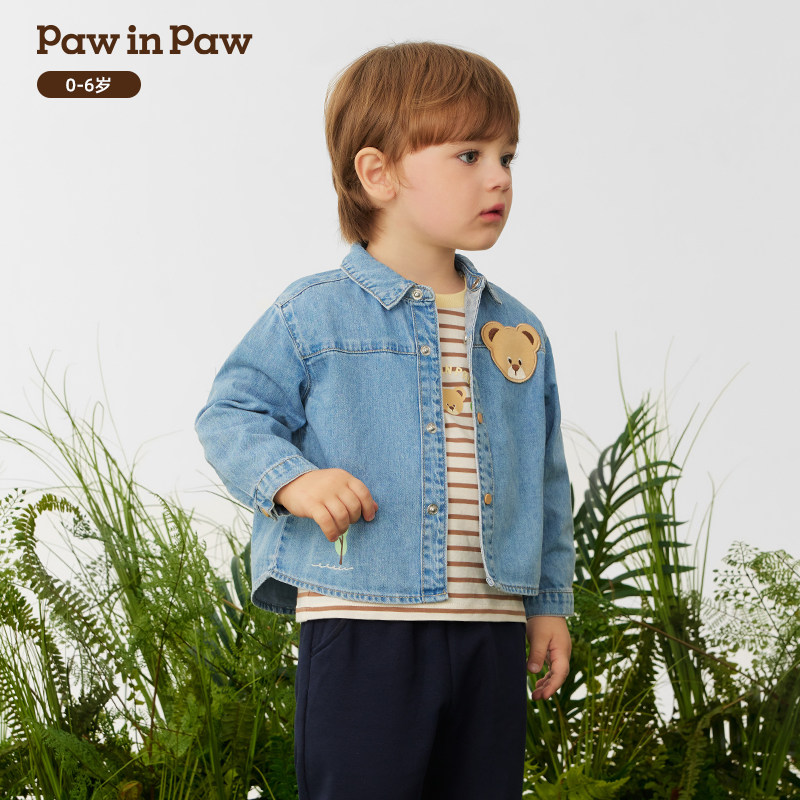 【全棉】PawinPaw卡通小熊童装26年新款男宝宝儿童牛仔长袖衬衫