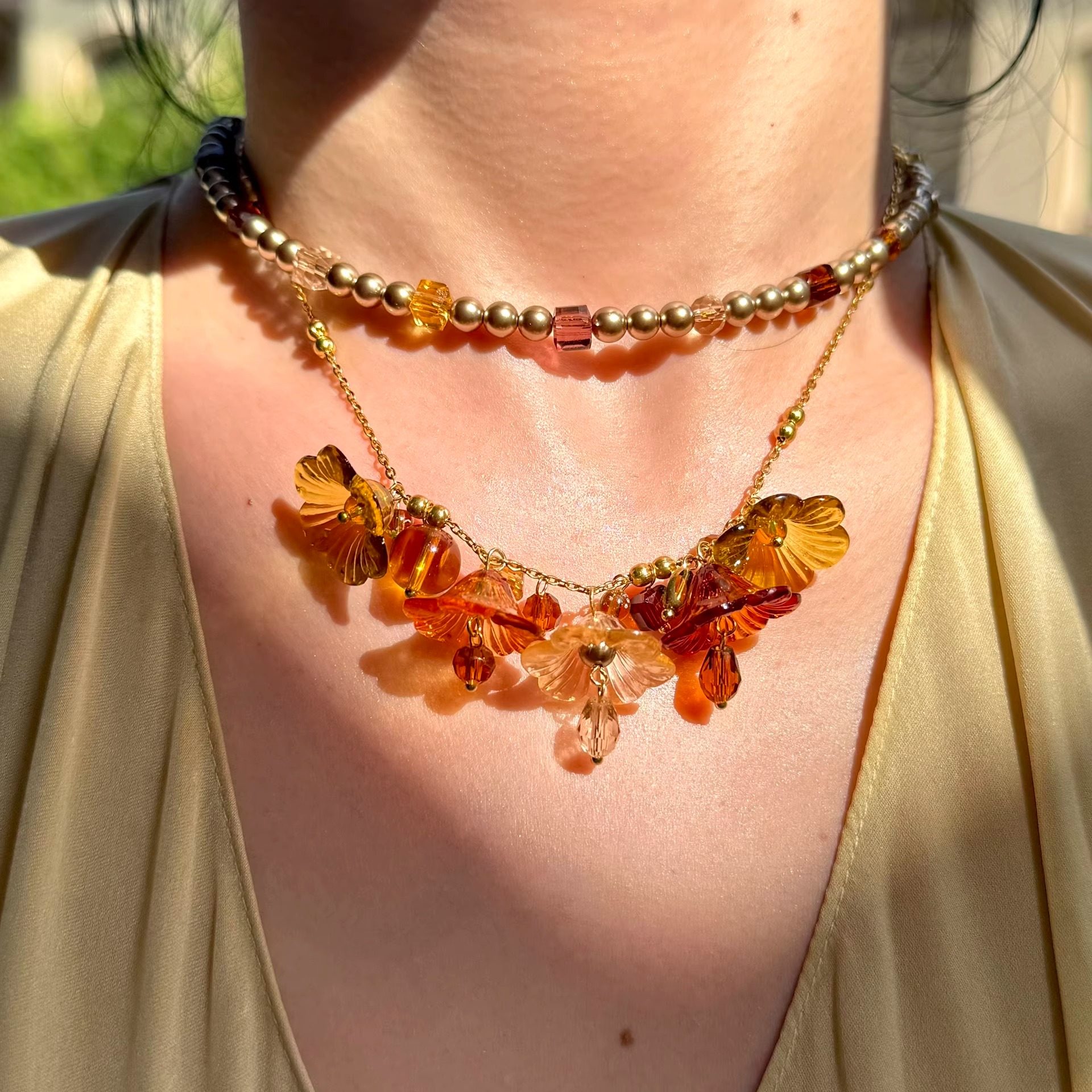 《诸神黄昏》原创复古法式美拉德莫瑞风珍珠水晶串珠项链锁骨链女
