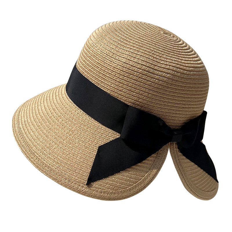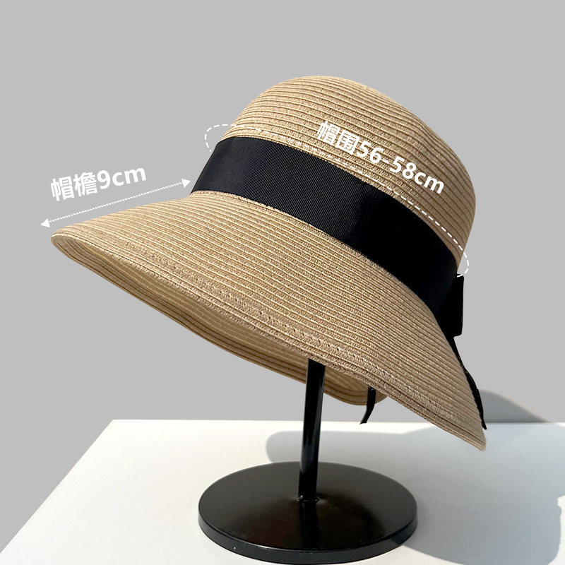 法式草帽海边遮阳可折叠扎马尾蝴蝶结显脸小防晒太阳帽度假渔夫