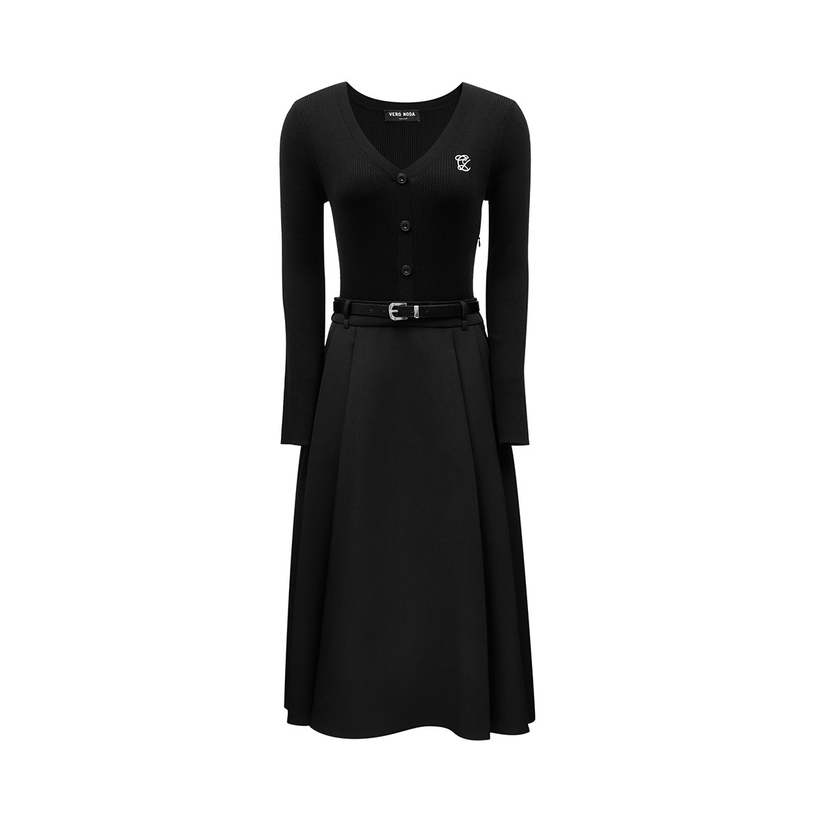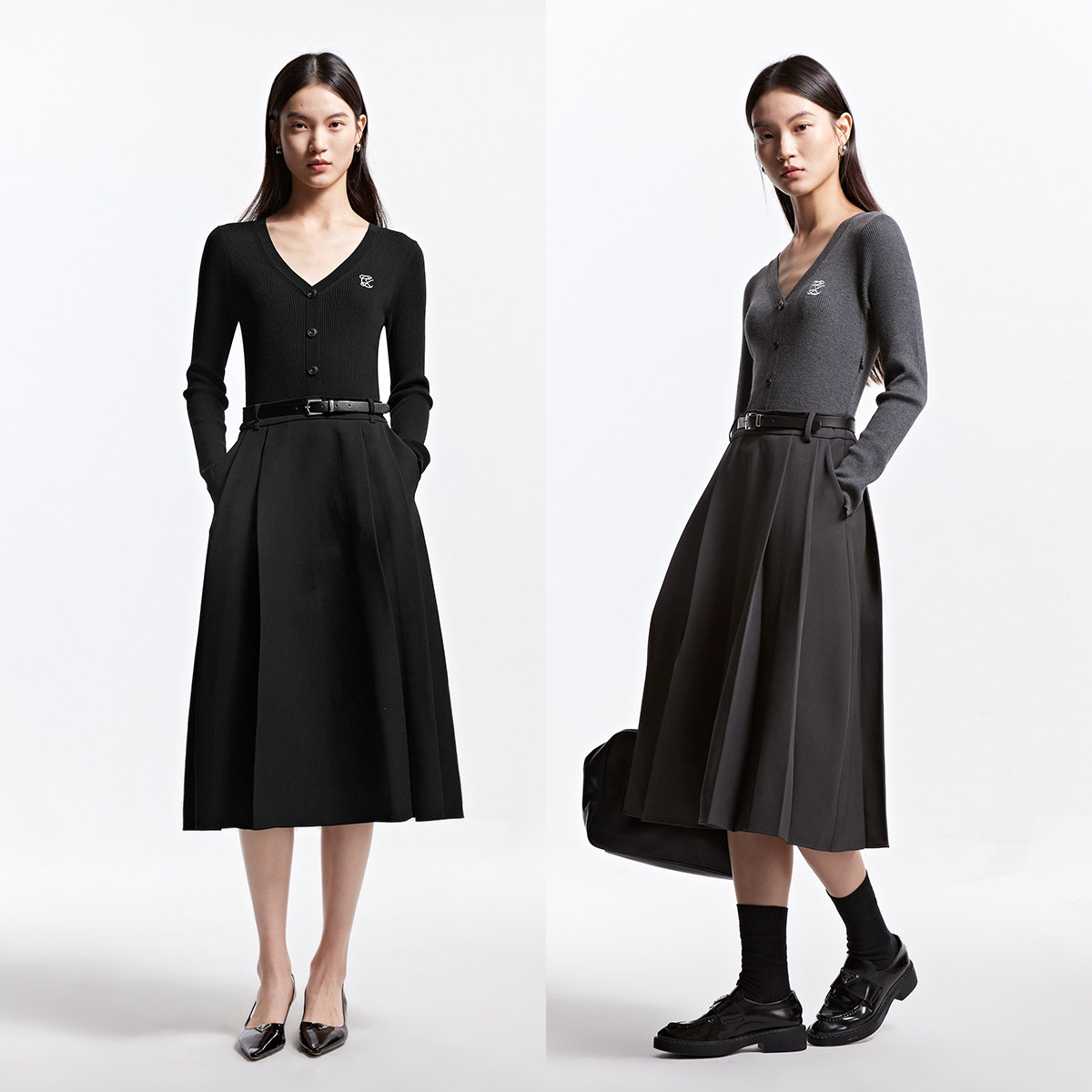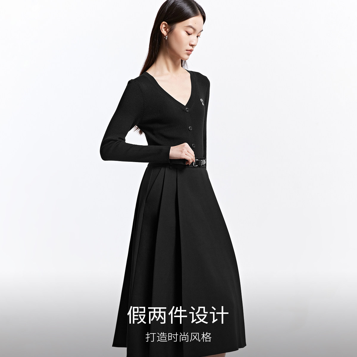 Vero Moda奥莱连衣裙2025秋季新款羊毛混纺针织拼接百褶学院长裙