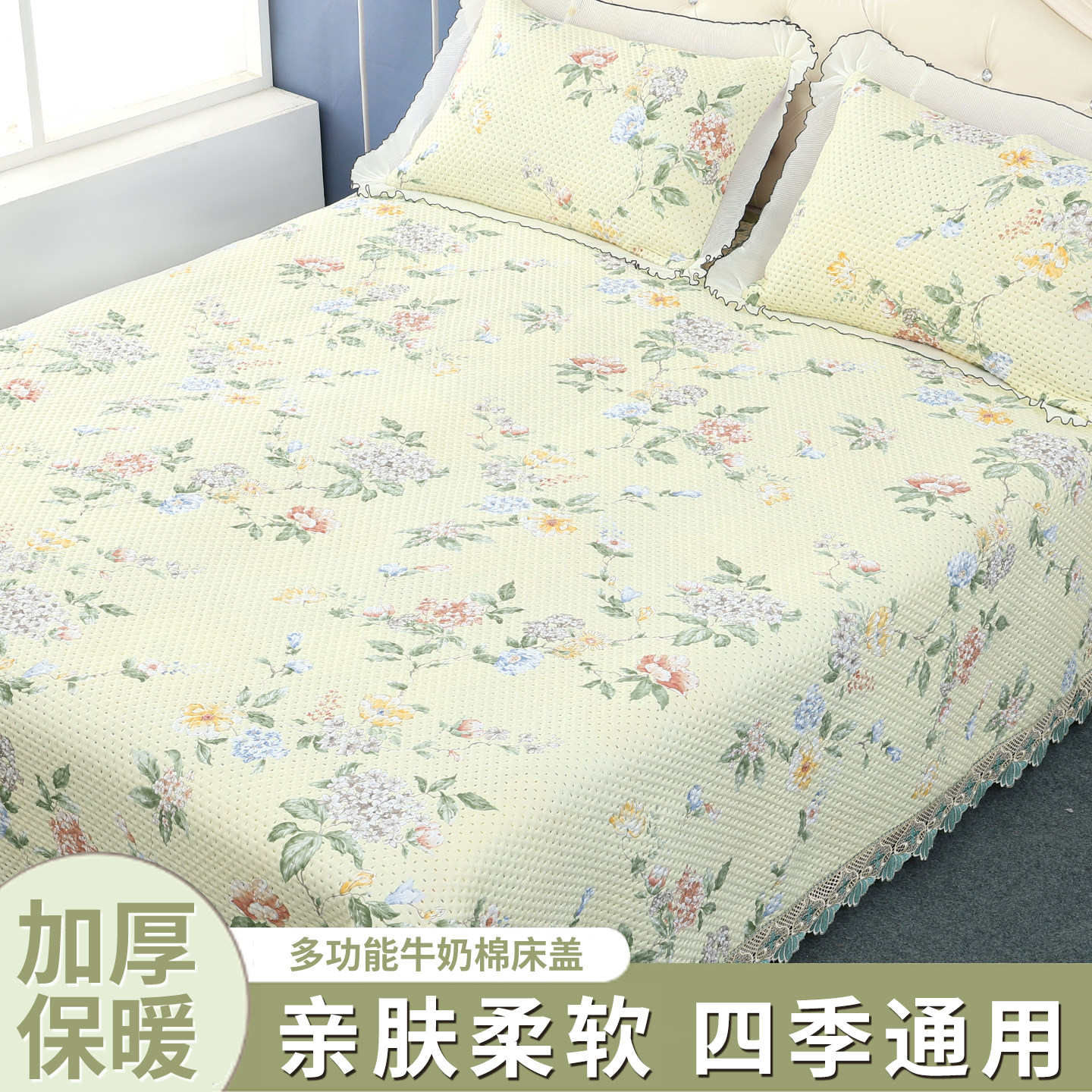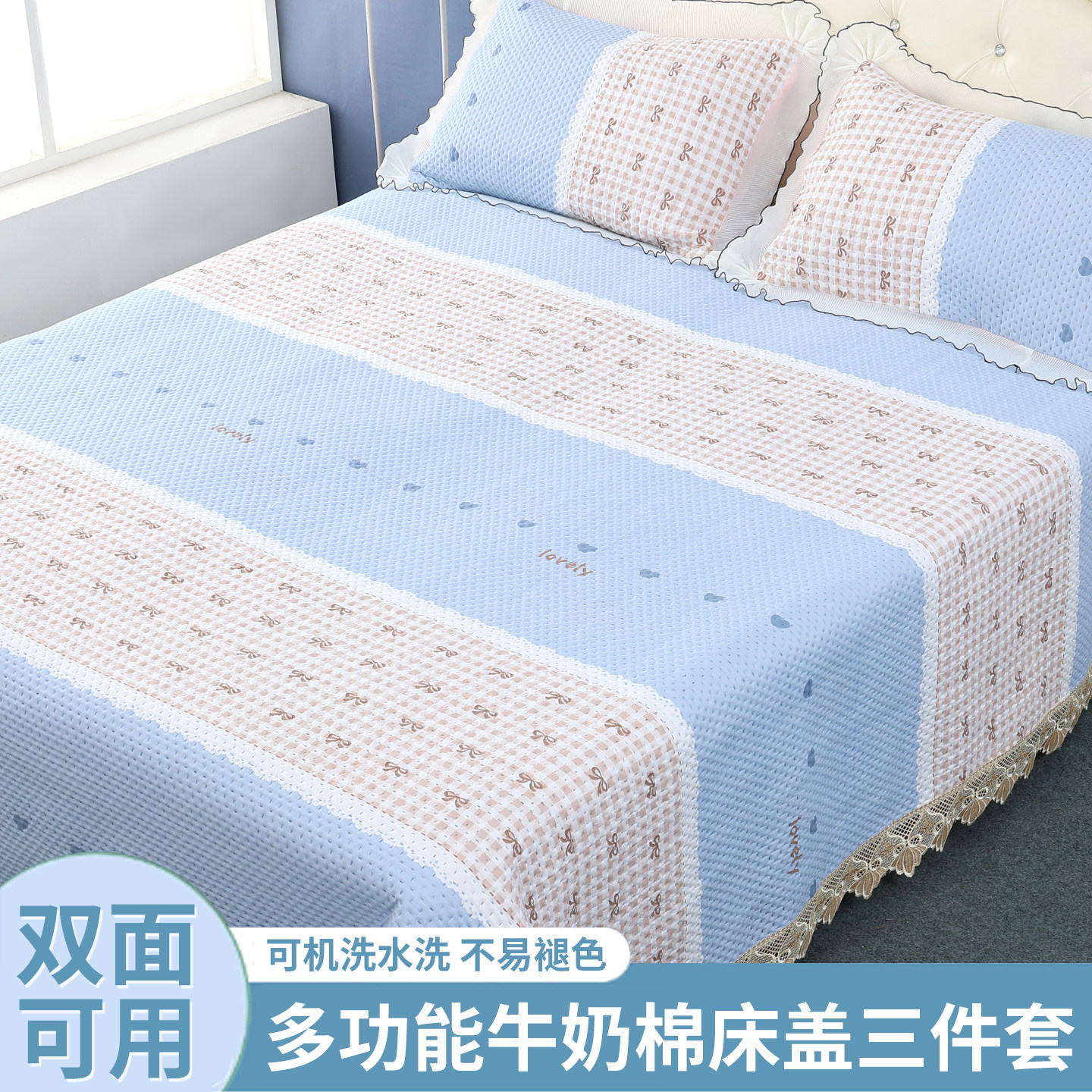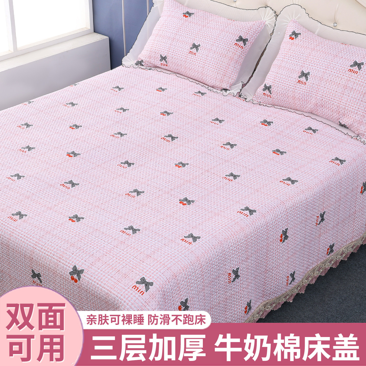A类水洗棉床盖三件套夹棉单件床单榻榻米防滑垫2025新款四季通用