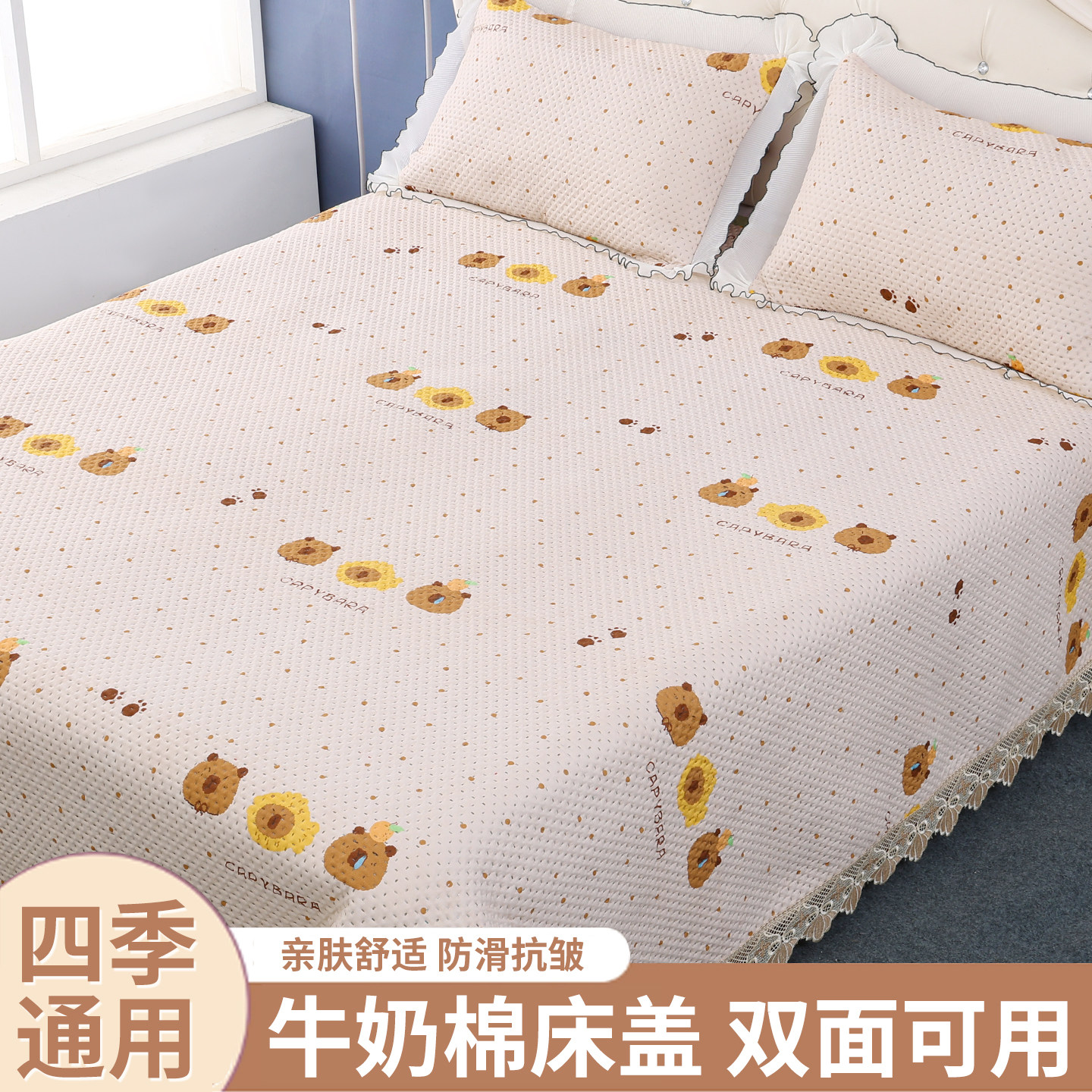 双面天丝床盖莫代尔凉感柔软加厚床单榻榻米炕盖防滑床垫可铺可盖