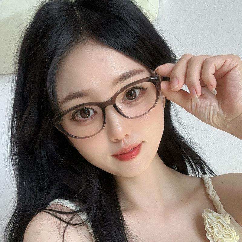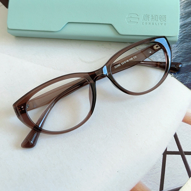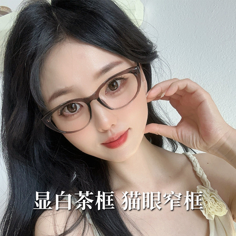 康视顿猫眼超轻眼镜素颜显白茶色女镜框窄框近视眼镜架潮流22292