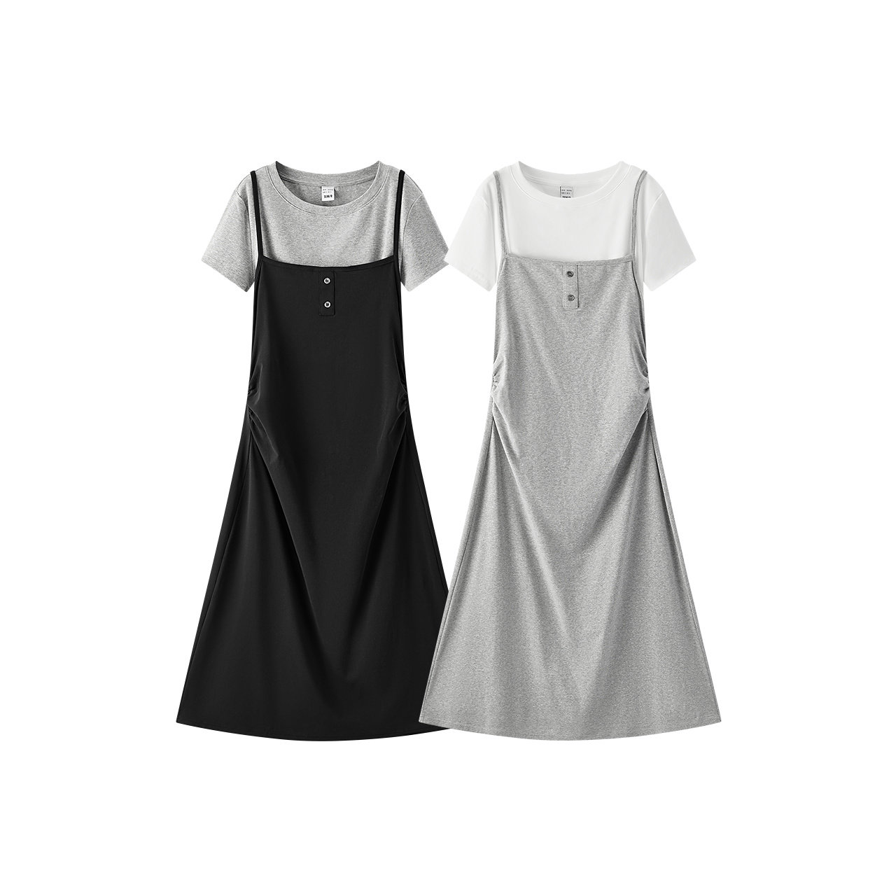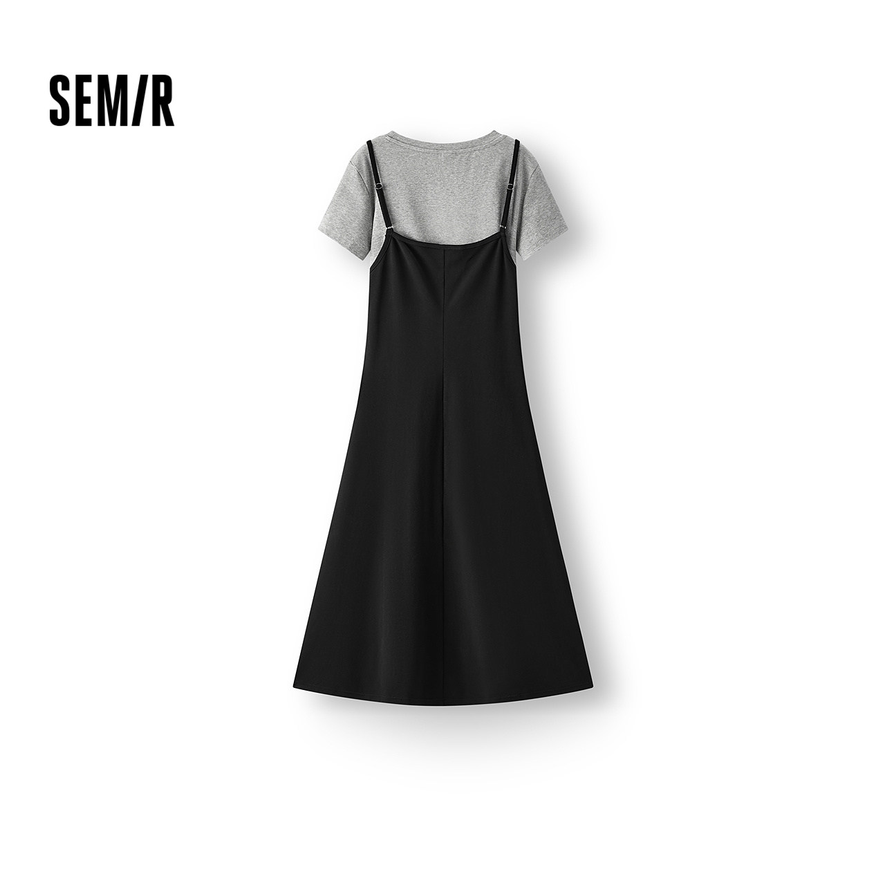 森马连衣裙女夏季纯色短上衣褶皱收腰吊带裙简约风气质优雅两件套