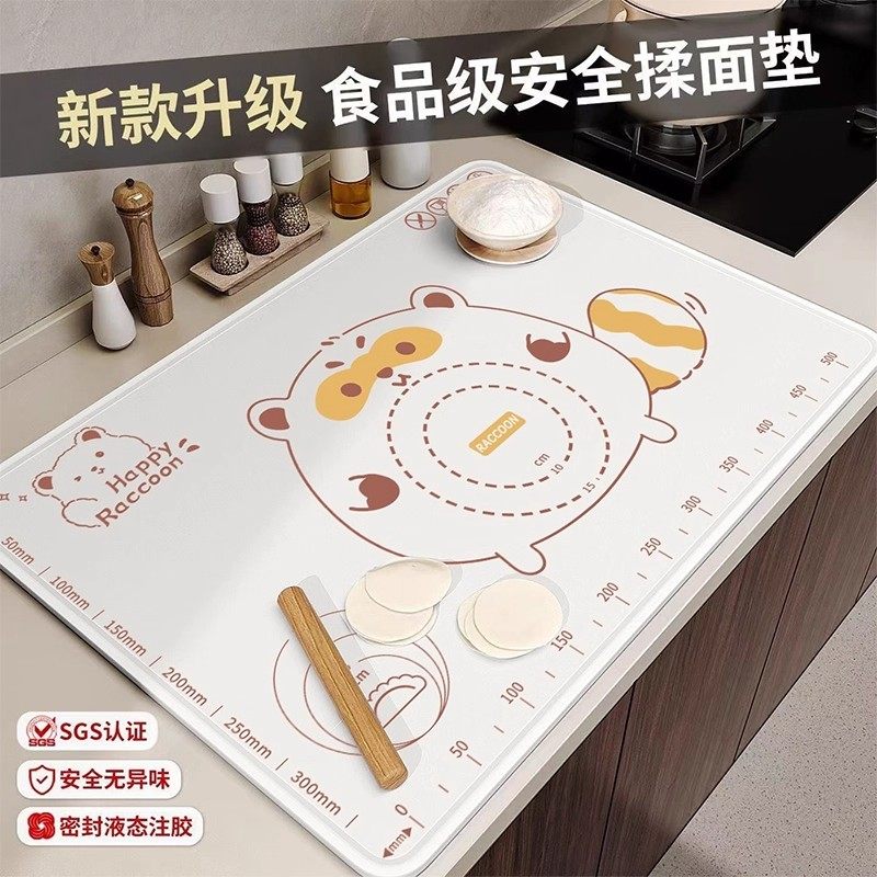 抗菌揉面垫食品级家用加厚小浣熊硅胶擀面和面板垫子厨房烘焙案板