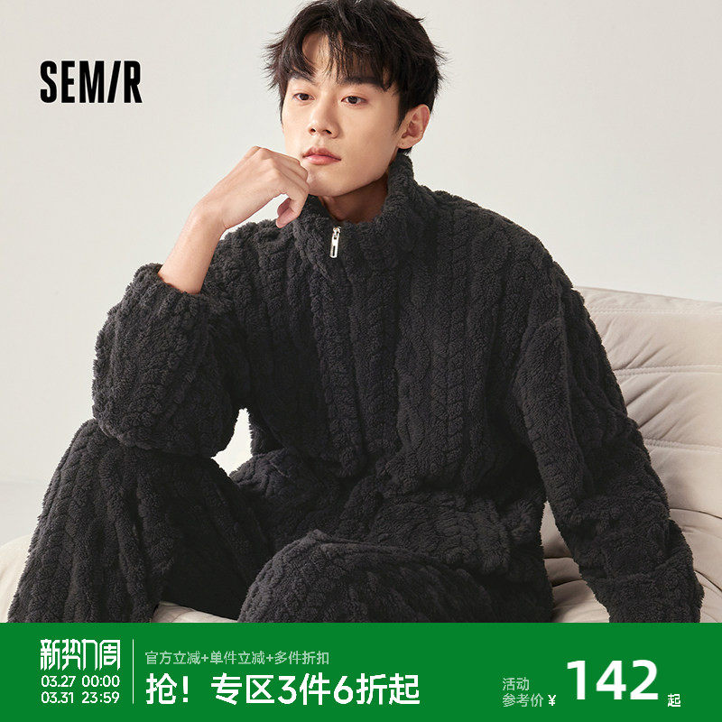 森马男士家居服套装保暖2026款秋冬男睡衣抗静电慵懒松弛外穿遛弯
