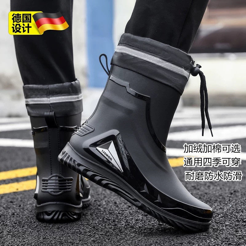 男士雨鞋防滑防水胶鞋中筒骑手水鞋秋冬加绒加厚户外钓鱼雨靴耐磨