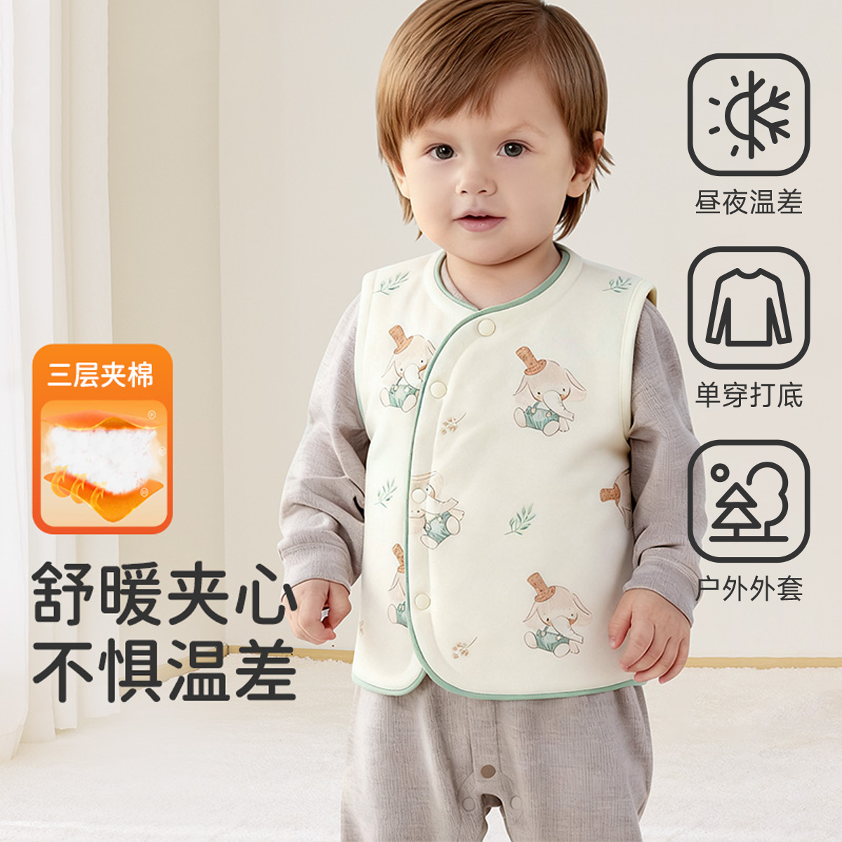 婧麒婴儿马甲秋冬季小月龄宝宝坎肩外穿背心上衣婴儿夹棉保暖马夹