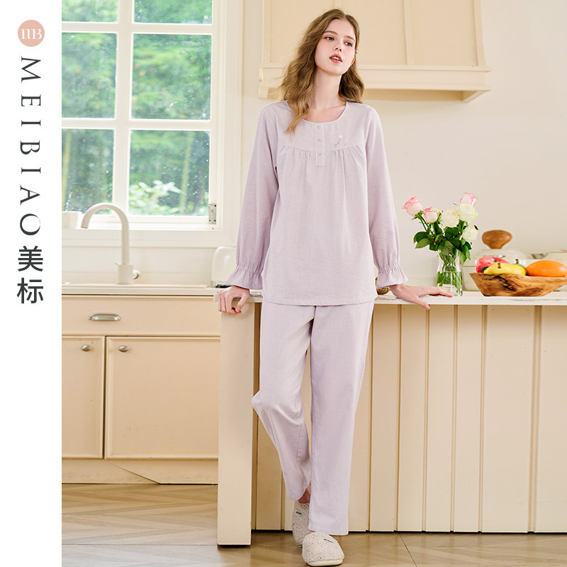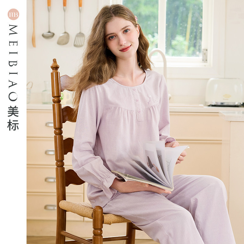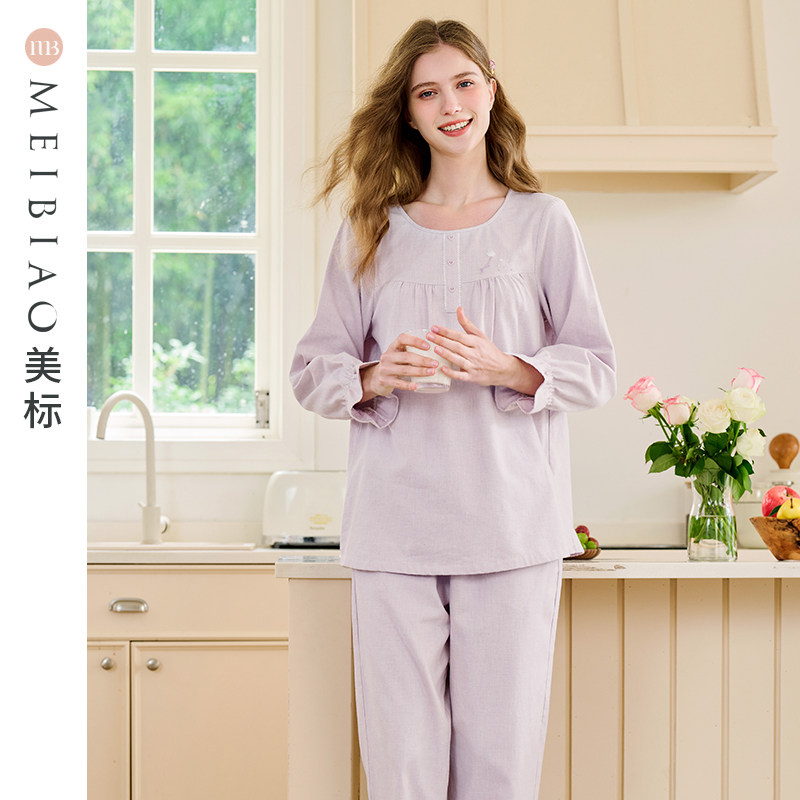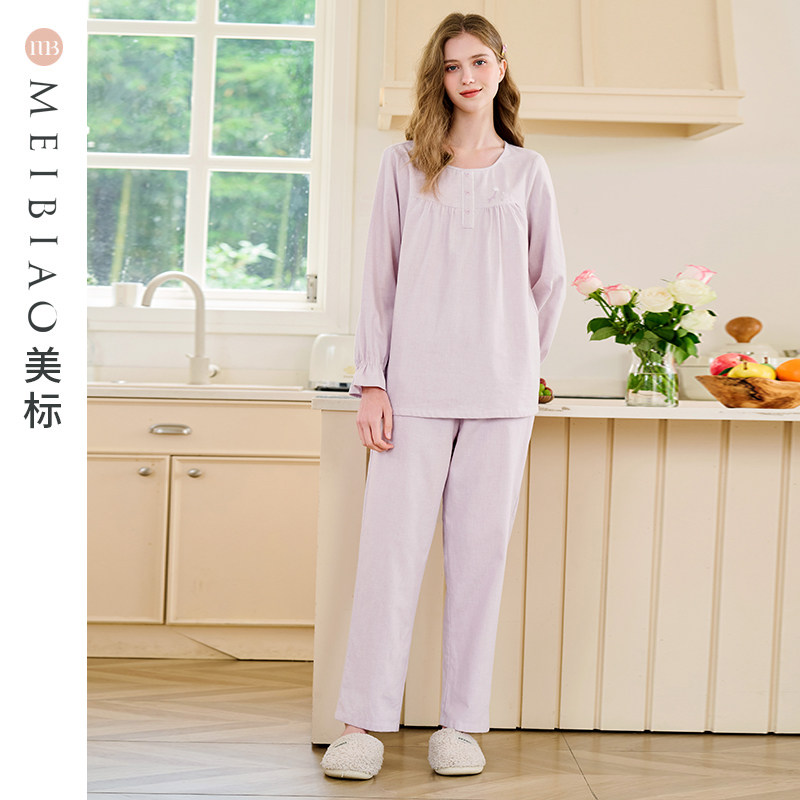 美标新款纯棉睡衣套装女春秋柔软磨毛休闲可外穿甜美全棉家居服冬