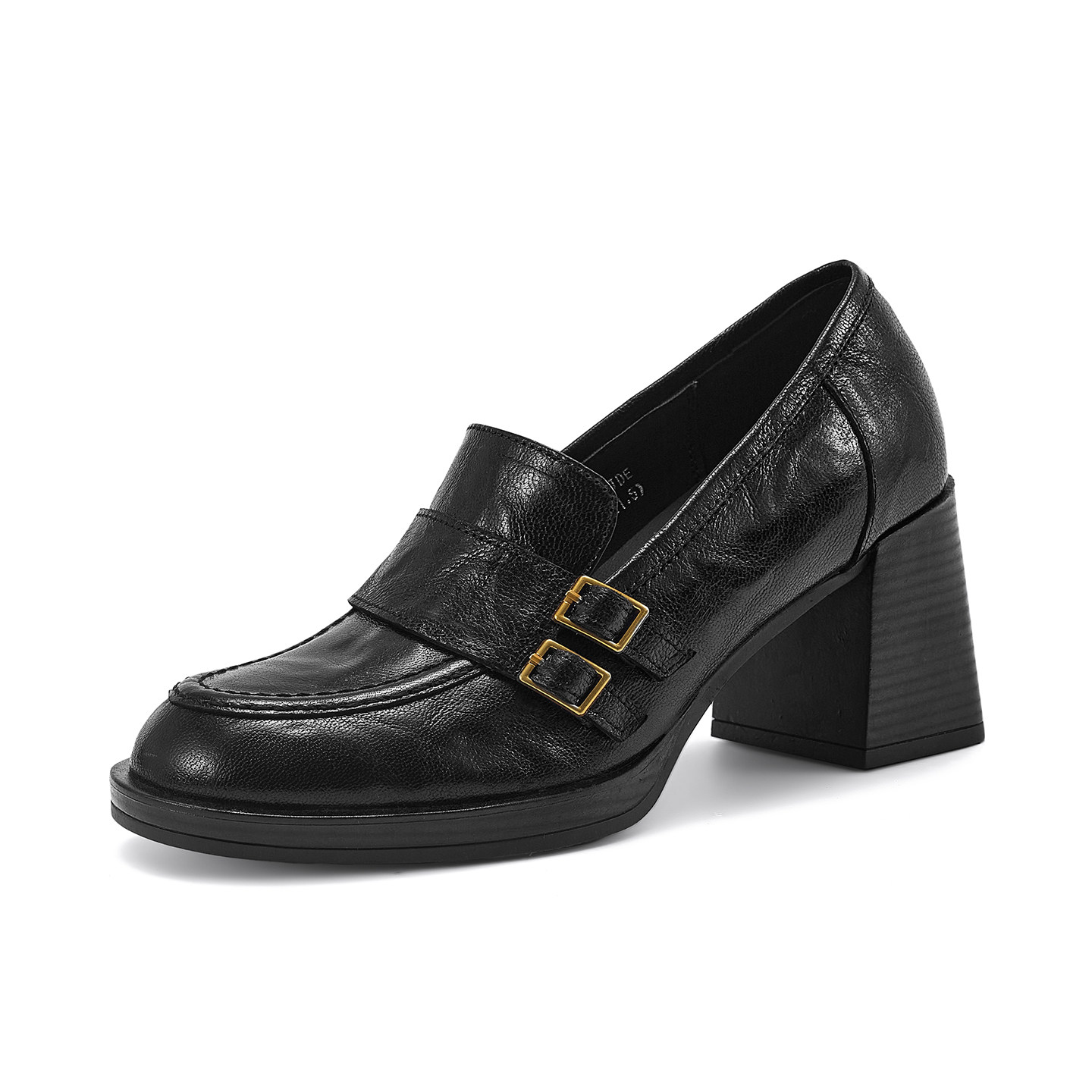 牛皮版~厚底增高乐福鞋女2025新款黑色通勤高跟单鞋英伦风小皮鞋