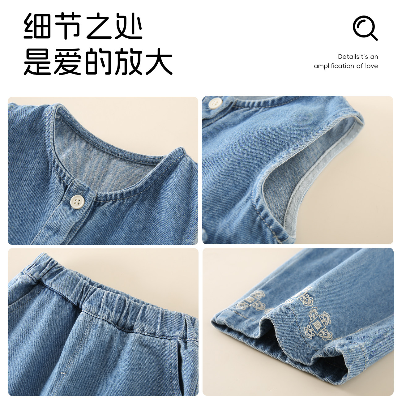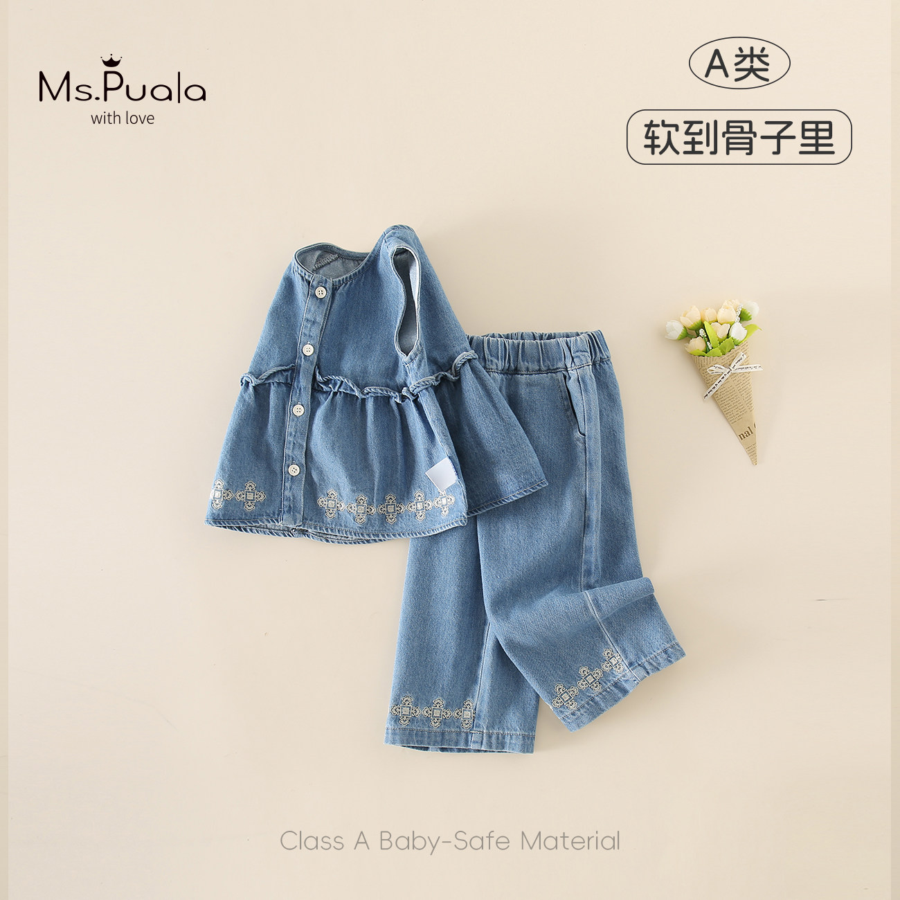 MsPuala女童套装春款新品儿童时髦牛仔背心裤子女宝宝牛仔两件套