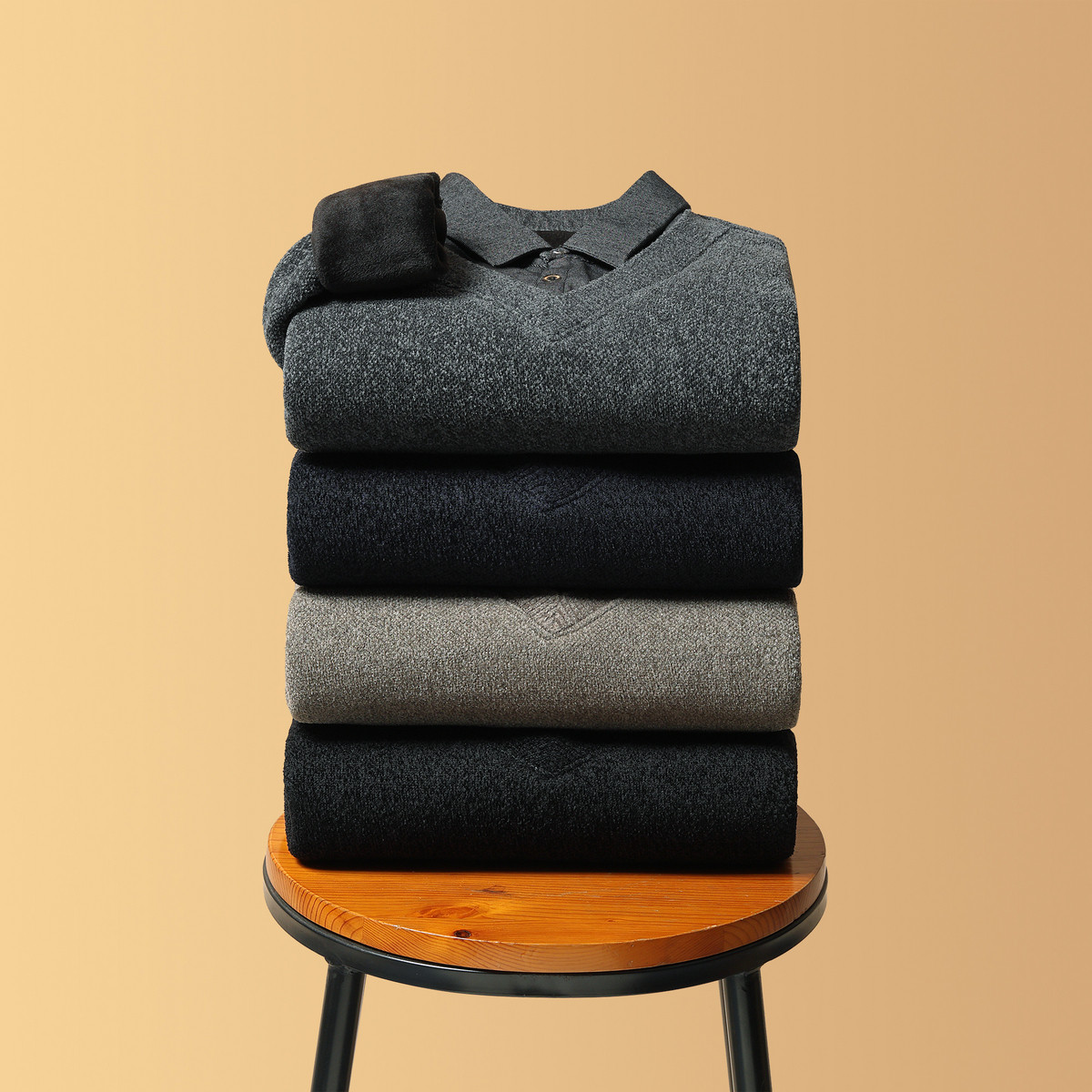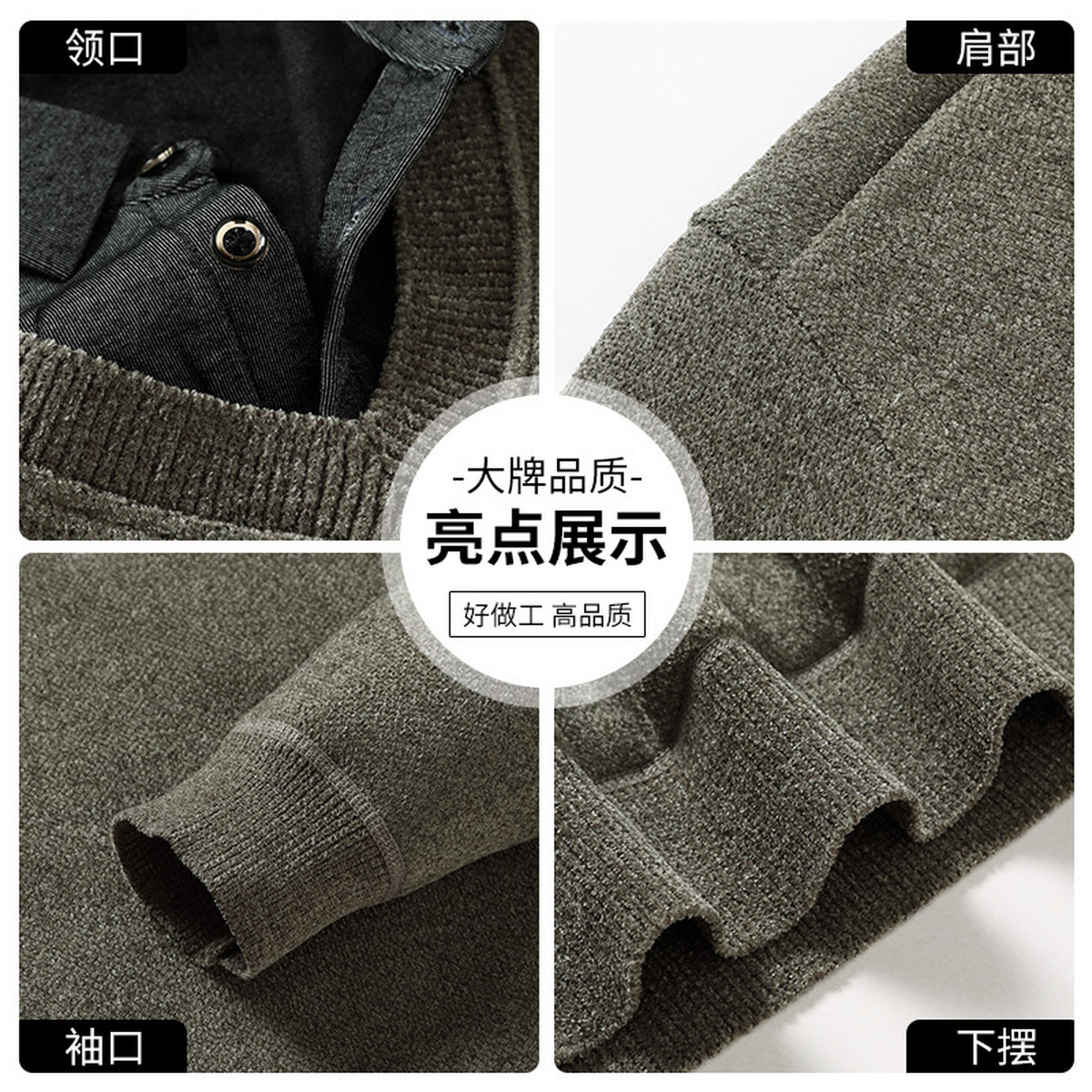 恒源祥一体绒羊毛衫男毛衣冬季中年假两件加绒加厚保暖爸爸打底衫