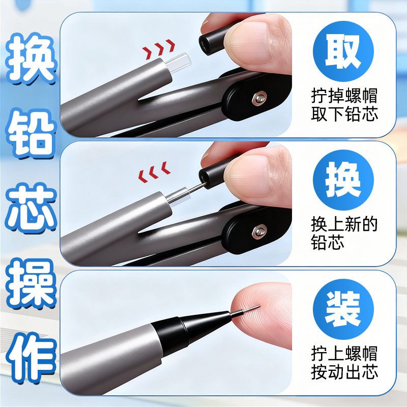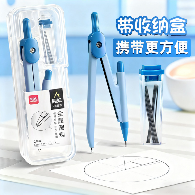 得力金属圆规小学生专用套装初中生考试画图画圆工具三六年级绘图