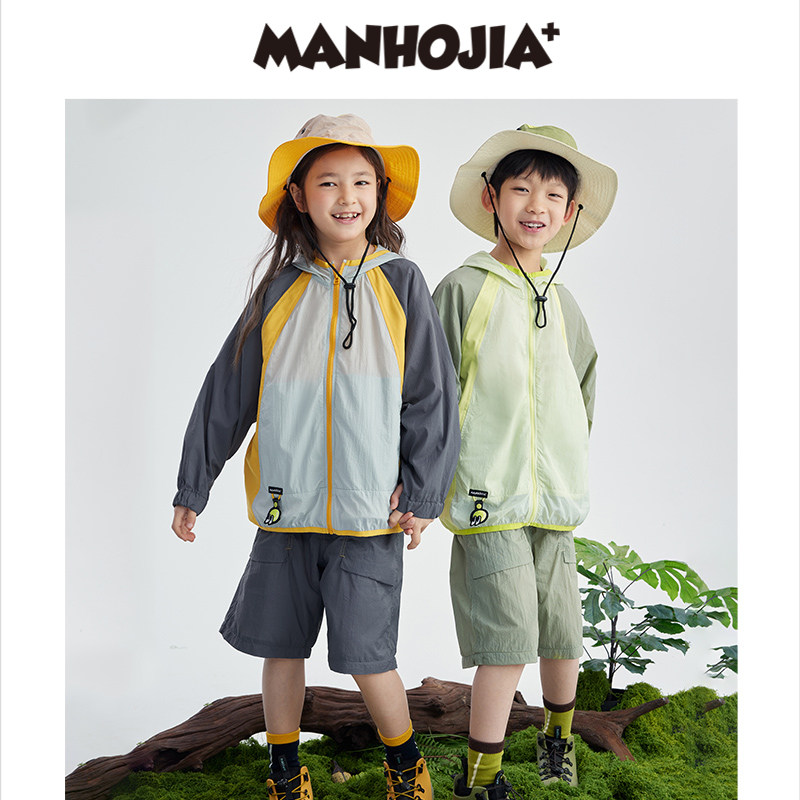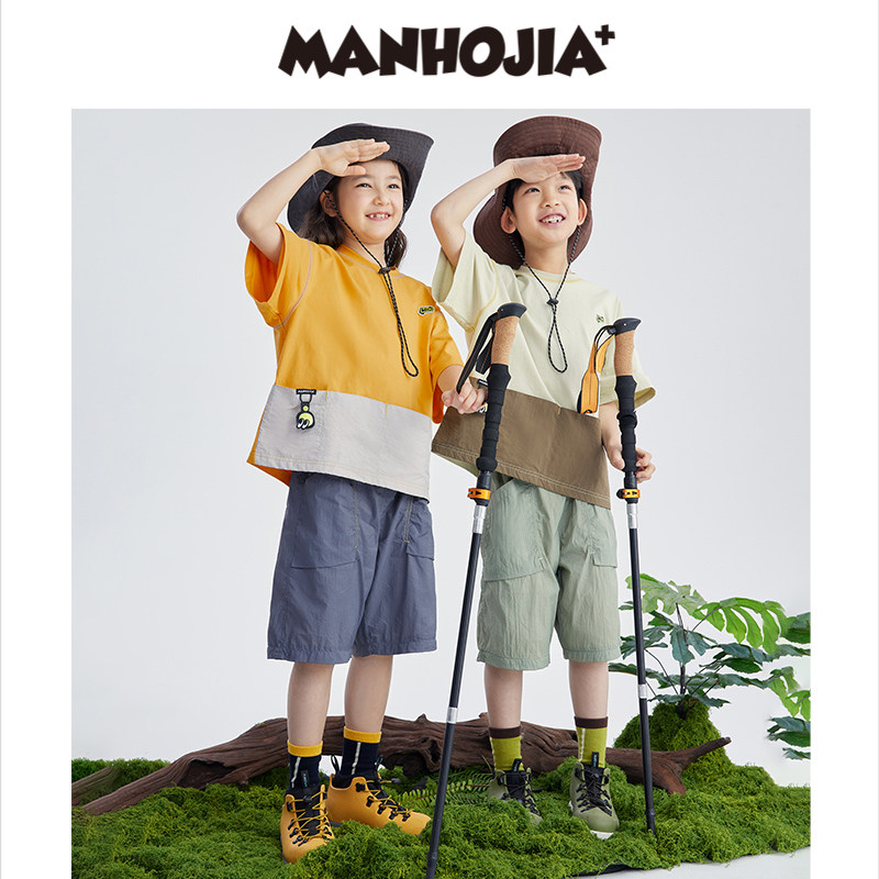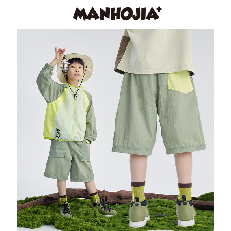 upf50+漫画家潮童装弹力拼色超轻夏季防晒女男童裤子夏装短裤