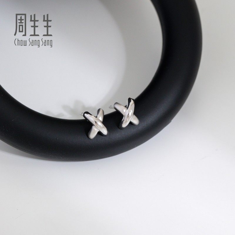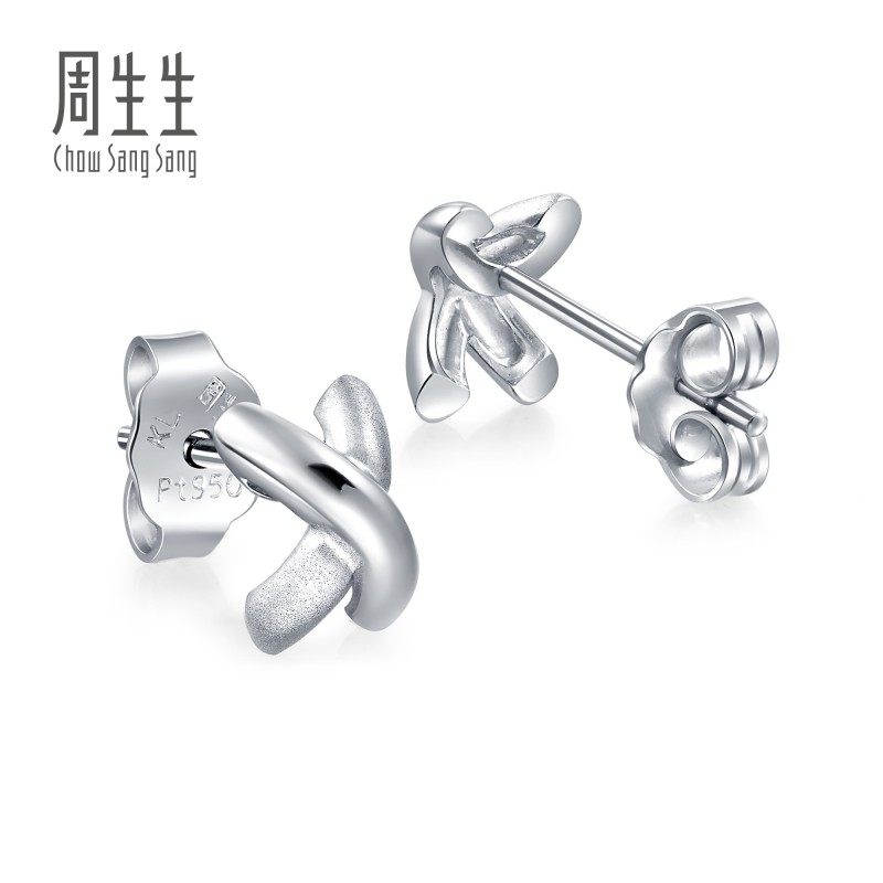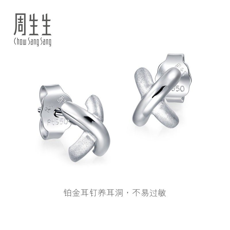 周生生Pt950铂金耳环交叉耳钉X耳钉女款耳饰32949E定价