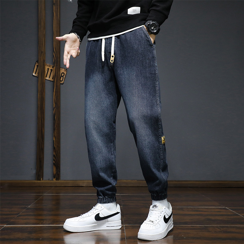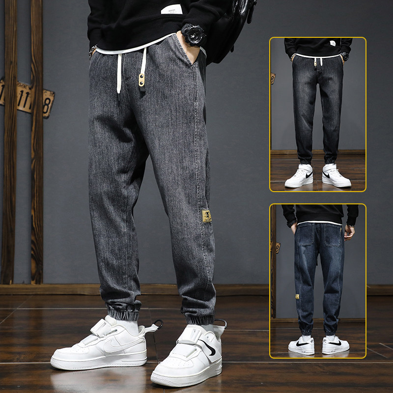 撤标撤柜(D)春秋季宽松牛仔裤男生潮流百搭束脚裤时尚休闲哈伦裤