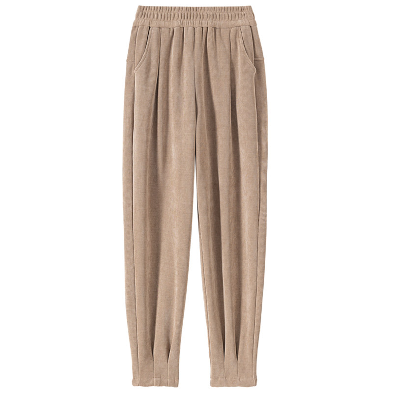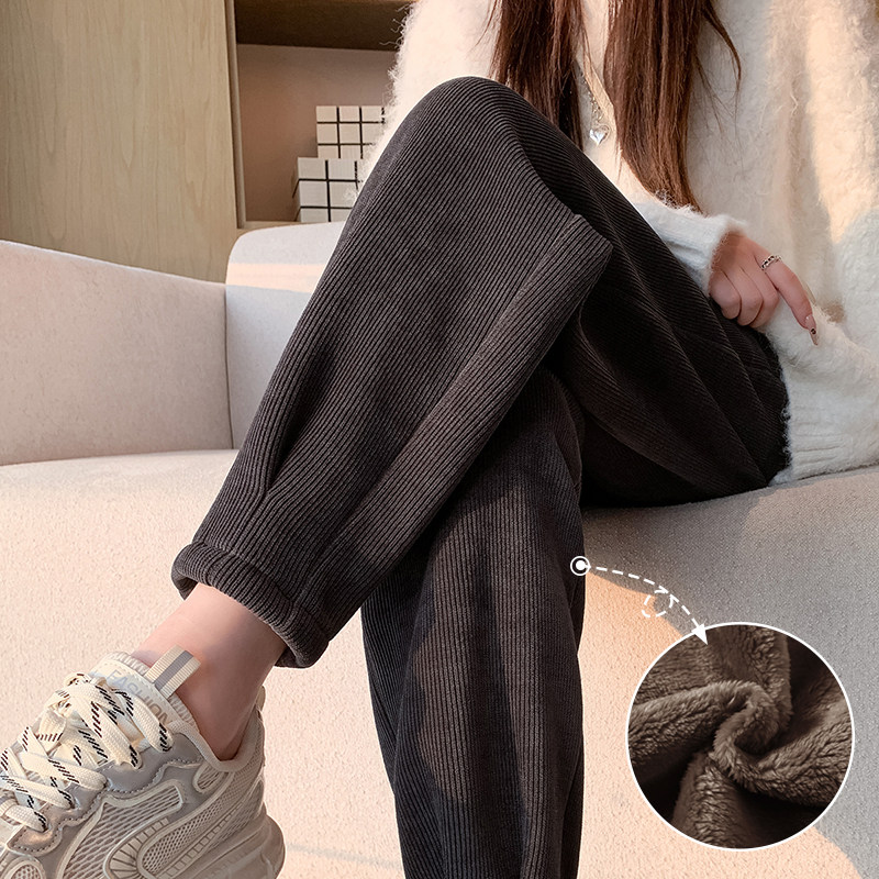 咖色萝卜裤女秋冬加绒加厚仿羊羔绒运动裤雪尼尔小个子宽松哈伦裤