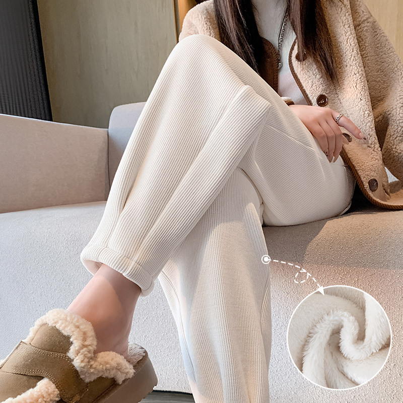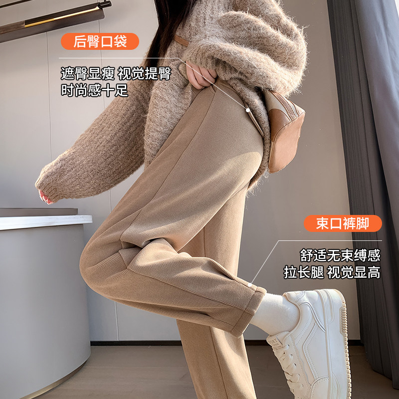 魔悦加绒糯米裤2025秋冬新款口袋显瘦休闲裤