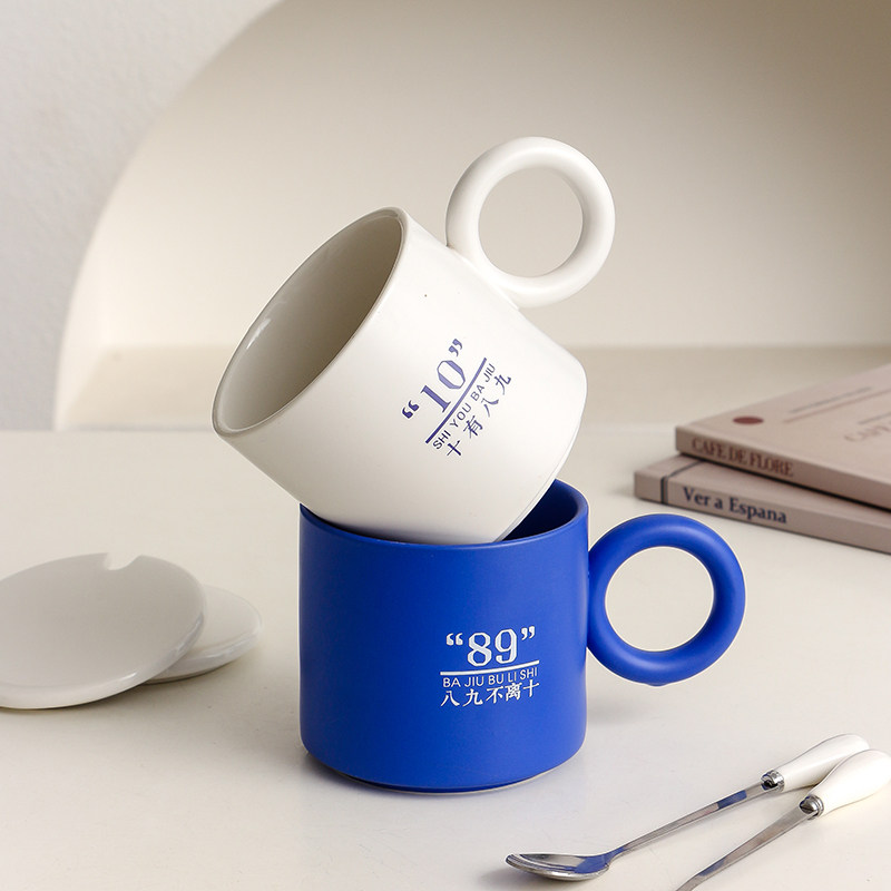 创意个性简约ins陶瓷马克杯男女生情侣家用早餐牛奶喝水对杯带盖