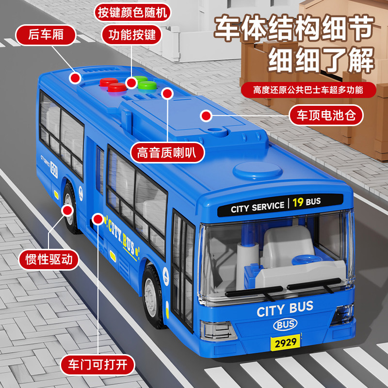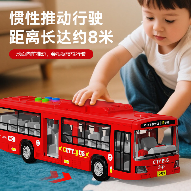 儿童公交车玩具大号公共汽车模型宝宝仿真巴士大巴车男孩开门惯性