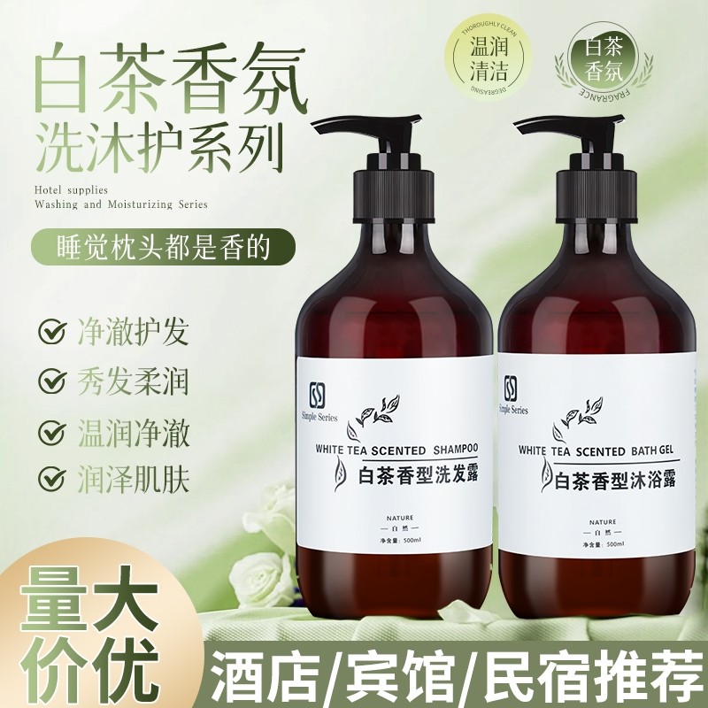 酒店洗发水沐浴露白茶洗护套装宾馆民宿洗浴中心300500ml大瓶