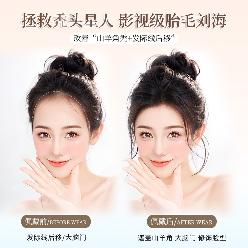 胎毛刘海假发片女头顶真发发际线空气刘海发贴自然前额八字刘海片