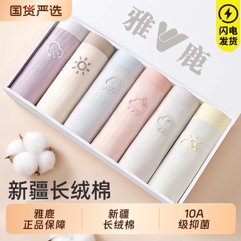 雅鹿女士内裤纯棉抗菌7级a裆全棉无痕2025新款女生款三角短裤中腰
